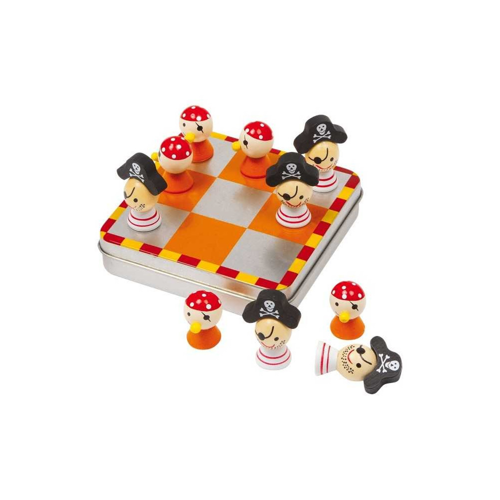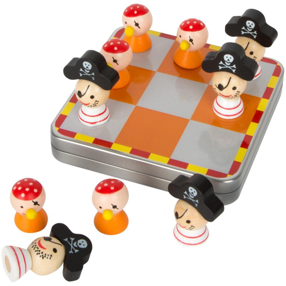 Hra obsahuje krabičku se 4 piráty od každé barvy.Cílem hry je vytvořit horizontální, vertikální nebo diagonální řadu z vašich pirátů. Toto musí být provedeno na herní desce, která je složena z 9 čtverců. I při velkých vlnách udrží malí piráti správný směr na praktické kovové krabici!Vítězem je hráč, který dokáže postavit takový řádek jako první. Podporuje logiku a zažene nudu. Německá firma Legler zaměřená na výrobu kvalitních dřevěných hraček od roku 1996. Všechny dřevěné hračky značky small foot mají označení CE a jsou vyráběny dle evropské normy pro bezpečnost hraček EN 71. Použité barvy jsou speciálně vyvinuty pro dřevěné hračky a jsou odolné i proti slinám dětí. Dřevo, které se používá pro tyto hračky, většinou pochází z lesnických společností zapojených do zalesňování. To nabízí všem zákazníkům možnost přispět k zachování přirozeně rostoucích lesů. Dřevěné hračky small foot jsou zářivě barevné produkty, které jsou vyrobeny převážně z přírodních surovin - dřeva. Dětem dělají radost od útlého věku, rozvíjí jejich hmatové a smyslové dovednosti. Cílem značky small foot je podporovat duševní a fyzický vývoj dětí.