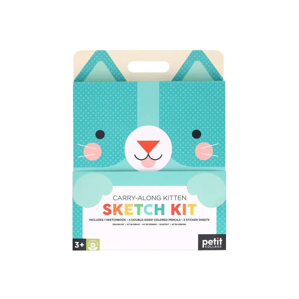 Buďte na svých cestách kreativní! Uvnitř pouzdra s kočičkou najdete vše, co budete ke svému tvoření potřebovat. Vezměte pastelky a naplňte skicák čímkoli, co vás napadne. Namalujete si vlastní zvířecí říši fantastických tvorů? Nakreslíte vesmír, roboty nebo mimozemšťany? Nebo si chcete jen načrtnout svět kolem sebe? Popusťte uzdu své fantazii a pak ozdobte své kresby více než 70 krásnými samolepkami. Tato sada podpoří hodiny kreativní zábavy. Sada obsahuje 100 stránkový skicák, čtyři oboustranné barevné pastelky a tři archy samolepek. Vyrobeno z FSC papíru a potištěno rostlinnými inkousty. Bez plastů bez laminace.