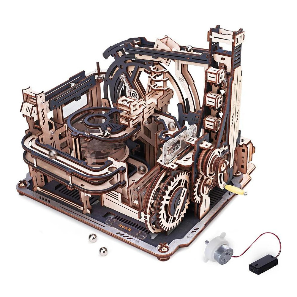 Z objevování neznáma se zrodil nápad pro sestrojení tohoto kosmodromu. Kosmodrom vypadá, jako by byl opravdu sestavený pro cestu do Vesmíru. Nevídaná interaktivní zábava a vizuální zážitek. Kosmodrom je poháněn manuálně i elektricky pomocí USB-C kabelu, který je ale potřeba dokoupit. Není součástí balení. Připravte se na zcela nečekanou vizuální jízdu. Jedinečnost této kuličkové dráhy spočívá v jejím vylepšeném designu se dvěma jízdními režimy (manuální, elektrický) a ve složitých mechanických konstrukcích, kterými je 6 objízdných mechanismů a 5 drah. Královna nabídky kuličkových drah Robotime nabízí mimořádné množství překážek. Skládačky kuličkových drah Robotime nabízejí jinde nevídané podrobnosti a variabilitu. Každá se může pyšnit originálními funkčními detaily a roztodivnými překážkami, které často nápaditě změní dráhu kuličky, a přinášejí tak výjimečnou zábavu. Mechanika je poháněna ručním/elektrickým pohonem. Skládačka je dodávána v nesloženém stavu, balena v krabici. Vybaveno detailním návodem k sestavení.Pokud chcete vytvořit něco opravdu unikátního, můžete dokoupit také Robotime 3D skládačku kuličkové dráhy Město překážek (LGA01) a (LG01) příslušenství k propojení s touto Robotime 3D skládačkou kuličkové dráhy Kosmodrom. Spojením těchto dvou kuličkových drah Vám vznikne unikátní vesmírný stroj. Hlavní vlastnosti: dva režimy jízdy manuální/elektrickýdosahuje 70 ot./minmontáž s přesnými díly bez použití lepidlaideální dárek nebo dekorace