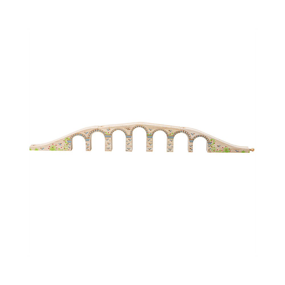 Dlouhý a vysoký dřevěný most pro vláčky, pod kterým konečně projedou všechny mašinky a vagónky bez problémů i s velkými náklady.
