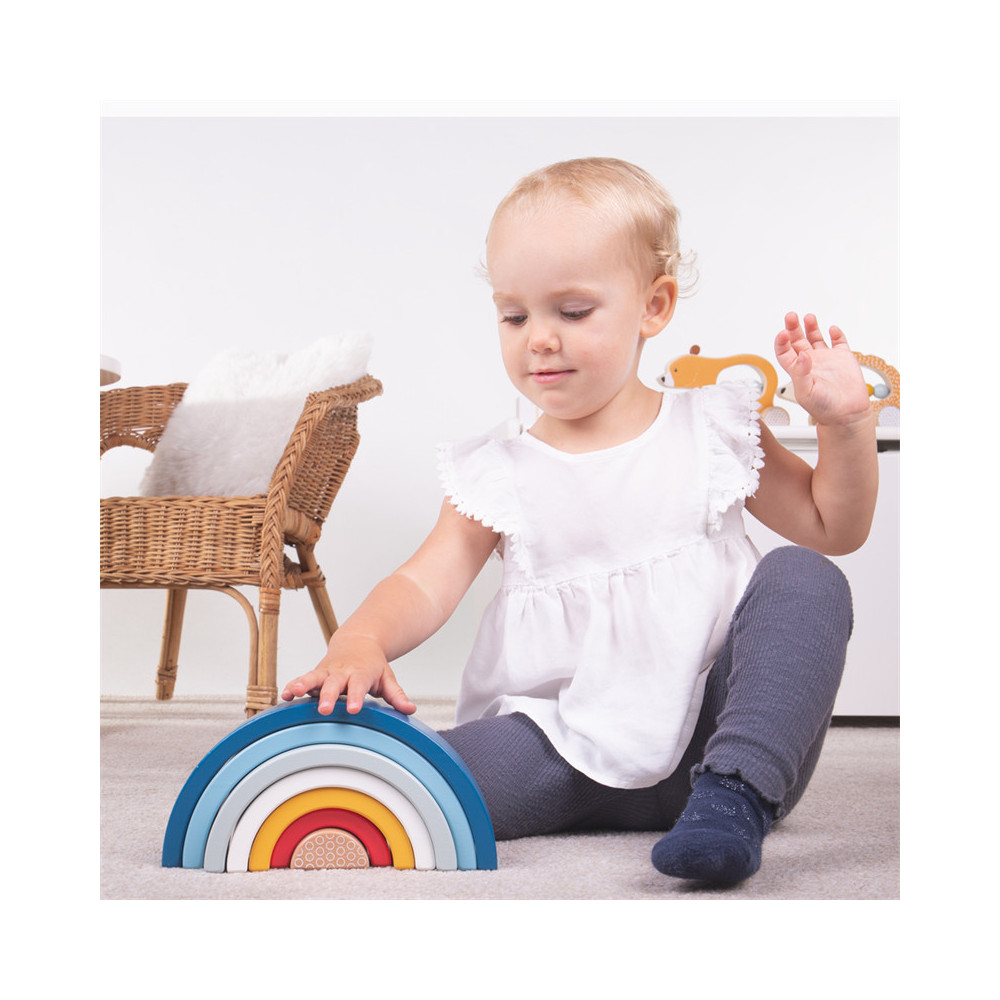 S těmito stohovacími půlkruhy mohou malé ručičky sestavovat různé tvary a předměty, zatímco se učí vše o různých velikostech. Vyrobeno z masivního dřeva a obarveno netoxickými barvami. Jakmile hrací doba skončí, může sloužit jako zábavná dekorace do ložnice nebo školky pro vaše nejmenší. Rozvíjí kreativitu a obratnost. Vyrobeno z vysoce kvalitních 100% FSC certifikovaných materiálů a zodpovědně pocházejících materiálů. Vyhovuje současným evropským bezpečnostním normám.