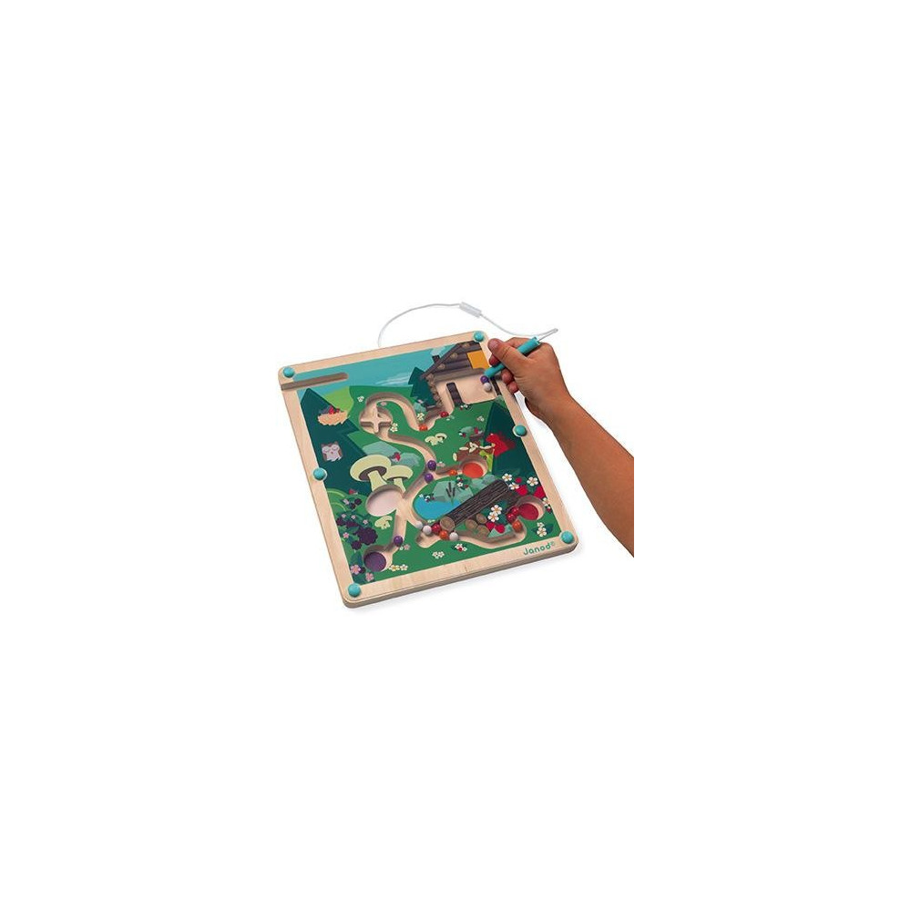 Život magnetického labyrintu v lese s 16 barevnými koulemi, které je třeba přivést na místa se stejnou barvou nebo domovem do chaty s magnetickým perem na šňůře. Dřevěné bludiště má také rotující kolo, skrz který se musíte dostat k míčům. Labyrint s kuličkami je uzavřen, magnetické pero na šňůře může být vloženo dovnitř na určené místo pro lepší a bezpečnější skladování. Hračka učí rozpoznávat a přiřadit barvy, zlepšuje jemné motorické dovednosti potřebu k tužce přilnavosti a rozvíjí sílu a manuální ruční dovednosti. Pro děti od 2 let Velikost produktu: 21 x 1,7 x 25 cm Materiál: dřevo s certifikátem FSC, plast