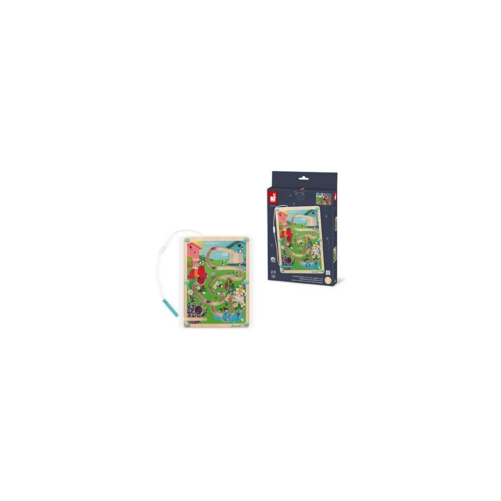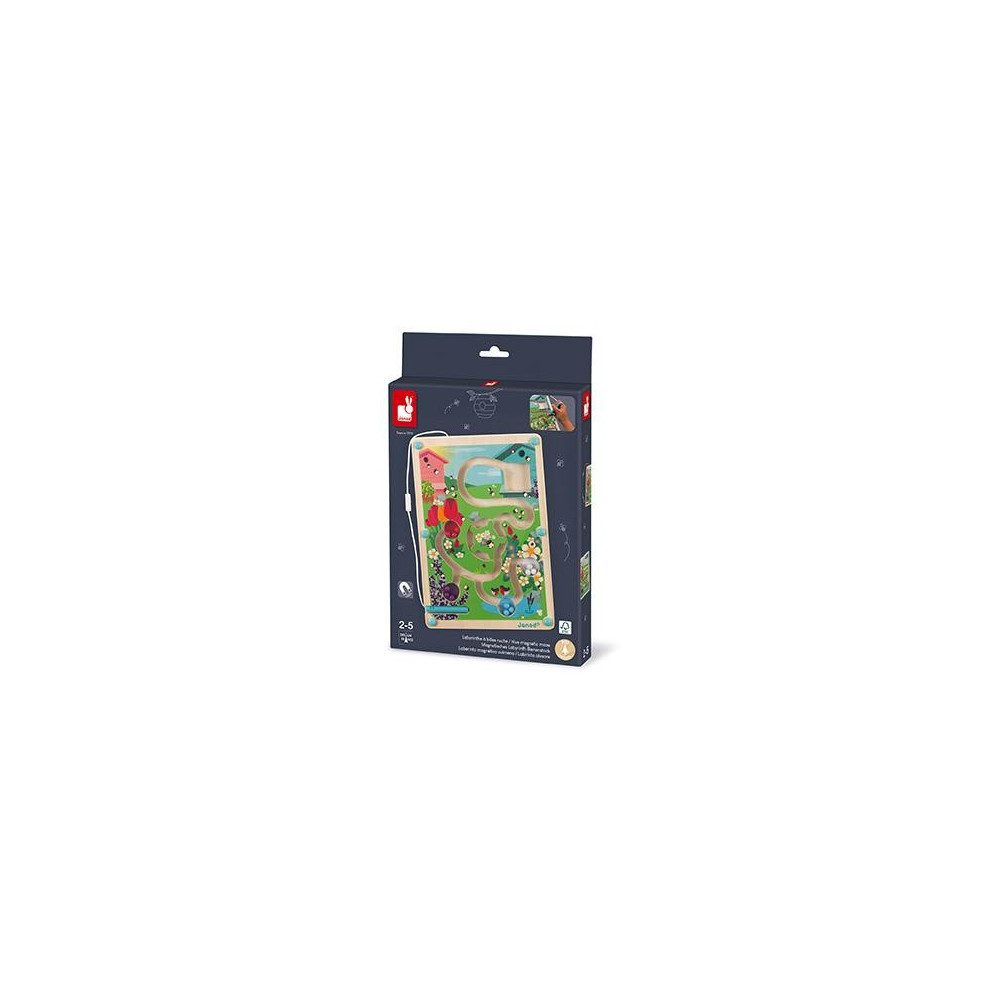 Magnetický labyrint Život v úli s 12 farebnými guľôčkami, ktoré je potrebné pomocou magnetického pera na šnúrke priviesť na miesta s rovnakou farbou alebo domov do úľa. Drevené bludisko má aj otáčacie koliesko, cez ktoré sa pri posúvaní guličiek musíte dostať. Labyrint s guličkami je uzavretý, magnetické pero na šnúrke je možné zasunúť dovnútra na určené miesto, pre lepšie a bezpečnejšie skladovanie. Hračka učí rozoznávaniu a priraďovaniu farieb, zdokonaľuje jemnú motoriku potrebnúpre úchop ceruzky a rozvíja silu a manuálnu zručnosť ruky. Pre deti od 2 rokov Rozmer produktu: 18 x 1.7 x 25 cm Materiál: drevo s certifikátom FSC, plast