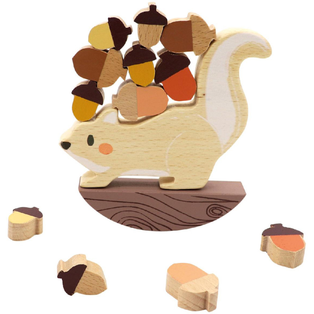 Rozpustilá veverka si chystá zásoby na zimu, unese všechny žaludy? Střídejte se v tazích s protihráčem a ukládejte postupně veverce zásoby tak, aby z vratké větve nespadla právě Vám, ale soupeři. Díky univerzálnímu návrhu lze figurku a herní dílky snadno využít při mnoha dalších hrách, nebo jako vkusnou ozdobu poličky v dětském pokoji. Součásti hry jsou vyrobeny za použití odolného masivního dřeva a nezávadných barev i laků.