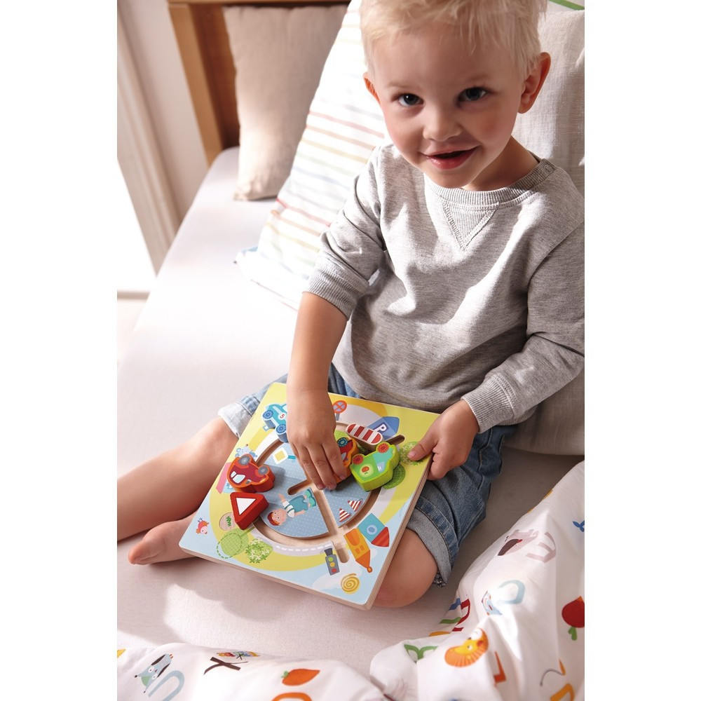 Dřevěná motorická hra s posuvnými auty a značkami. Hra rozvíjí jemnou motoriku, koncentraci a stimuluje logické myšlení nejmenších.