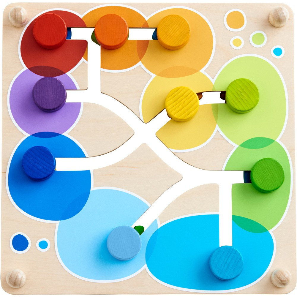 Oboustranná deska s posuvnými prvky. První seznámení s barvami a tvary. Podporuje jemné motorické dovednosti.