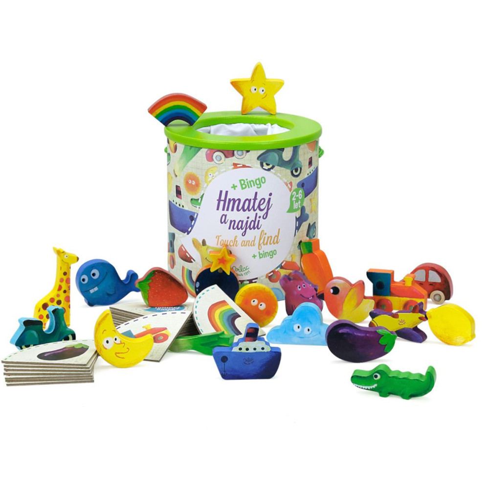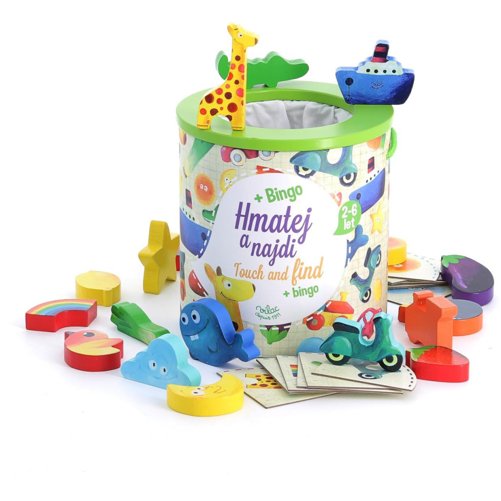 Nepřekonaný bestseller Vilac se originálním způsobem snaží rozvíjet často opomíjený smysl dětí, hmat. Hra je tvořená zejména dřevěnými figurkami ukrytými v kyblíku vybaveném uvnitř jemným látkovým sáčkem. Menší děti mají za úkol po vložení ruky do tuby jen na základě hmatání popsat svými slovy, jaký předmět drží v ruce. Rodiče mohou postup dětem předvést názorným příkladem. Starší děti mohou hrát hru ve formě lota, nebo binga, k těmto hrám jsou v sadě k dispozici obrázkové karty jednotlivých předmětů.