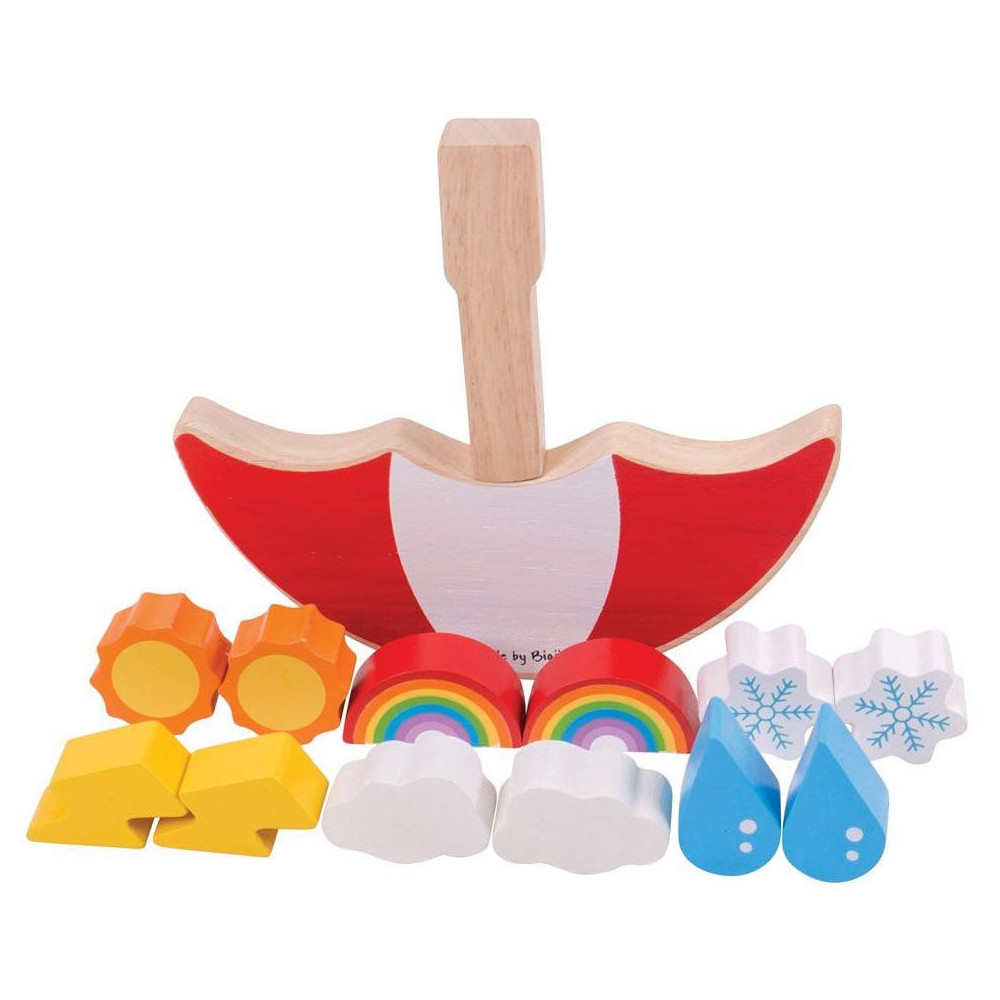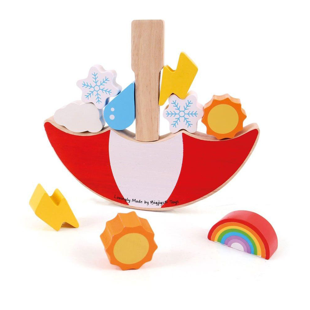 Jak vysoko můžete vyvážit různé dílky počasí? Jedná se o hru dovednosti a trpělivosti, která bude bavit celou rodinu! Hráči si musí střídavě brát po jednom kuse a skládat na deštník, aniž by ho převrhli. Poslední hráč, který úspěšně přidá kus vyhraje! Zahrnuje 6 symbolů počasí včetně duhy, oblačnosti, sněhové vločky, dešťové kapky, slunce a blesku. Rozvíjí koordinaci rukou a očí, jemné motorické dovednosti a zručnosti. Podporuje logické myšlení. Vyrobeno z vysoce kvalitních, zodpovědně dodávaných materiálů. Odpovídá současným evropským bezpečnostním normám. Skládá se z 13 dílků. Hlavní vlastnosti: obsahuje 13 dílkůrozvíjí koordinaci ruka-oko, jemnou motoriku a zručnost