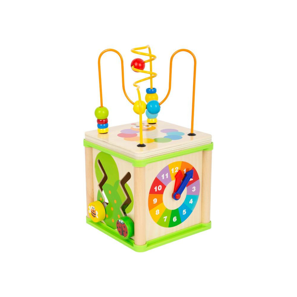 Pokud nemáte ve své herně mnoho místa a není v ní prostor na hraní, je tato multifunkční motorická kostka ideální. S oddělitelným labyrintem, ozubenými kolečky, hodinami a logickou hrou děti hravě trénují jemné motorické dovednosti a jejich soustředění.