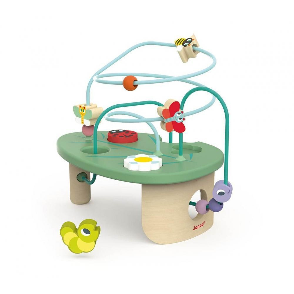 Táto atraktívna hračka pomôže vášmu dieťaťu pri zábave rozvíjať koncentráciu a motorické schopnosti. Má dizajn v tvare listu, ktorý evokuje jar, má dva drôty s korálkami v tvare motýľov, húsenicu a vtáčika, ktoré cez štruktúru kĺzajú. Má tiež 3 dieliky (kvetina, húsenica, lienka), ktoré zapadajú do vrchnej časti a pomáhajú rozvíjať obratnosť a zručnosť.Vhodné pre deti od 1 roka.