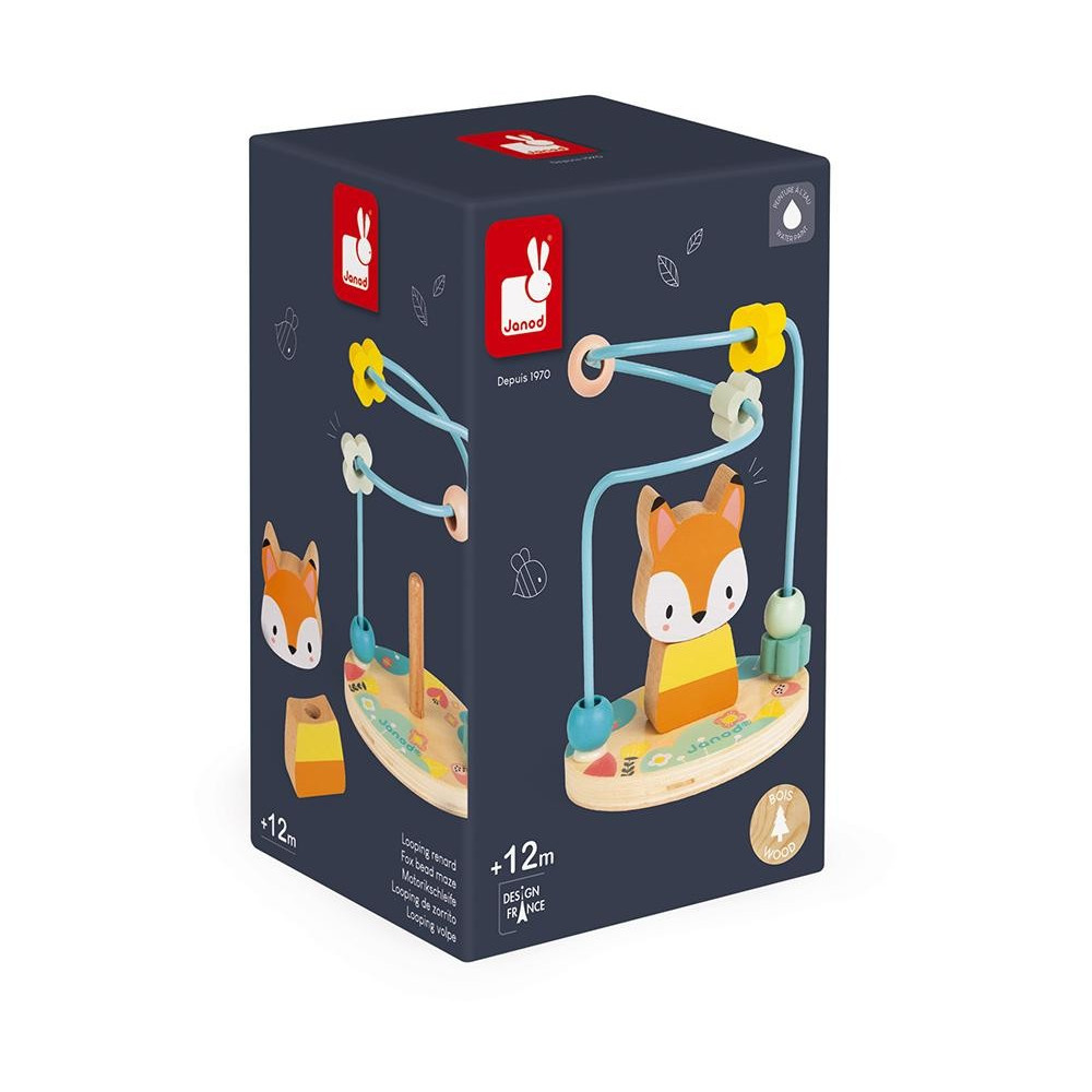 Motorická drevená hračka slučkovanie Pure Janod, je hračka pre detičky od jedného roka. Milá, farebná Líška v strede je zložená z dvoch častí, hlavy a tela a dá sa rozložiť. Na slučkovaní sú milé farebné drevené korálky, kvetinky a guľôčky. Dieťa si prostredníctvom tejto hry rozvíja a zlepšuje jemnú motoriku. Rozmer: 11 x 8 x 14,5 cm Vhodné pre deti od 12 - 36 mesiacov