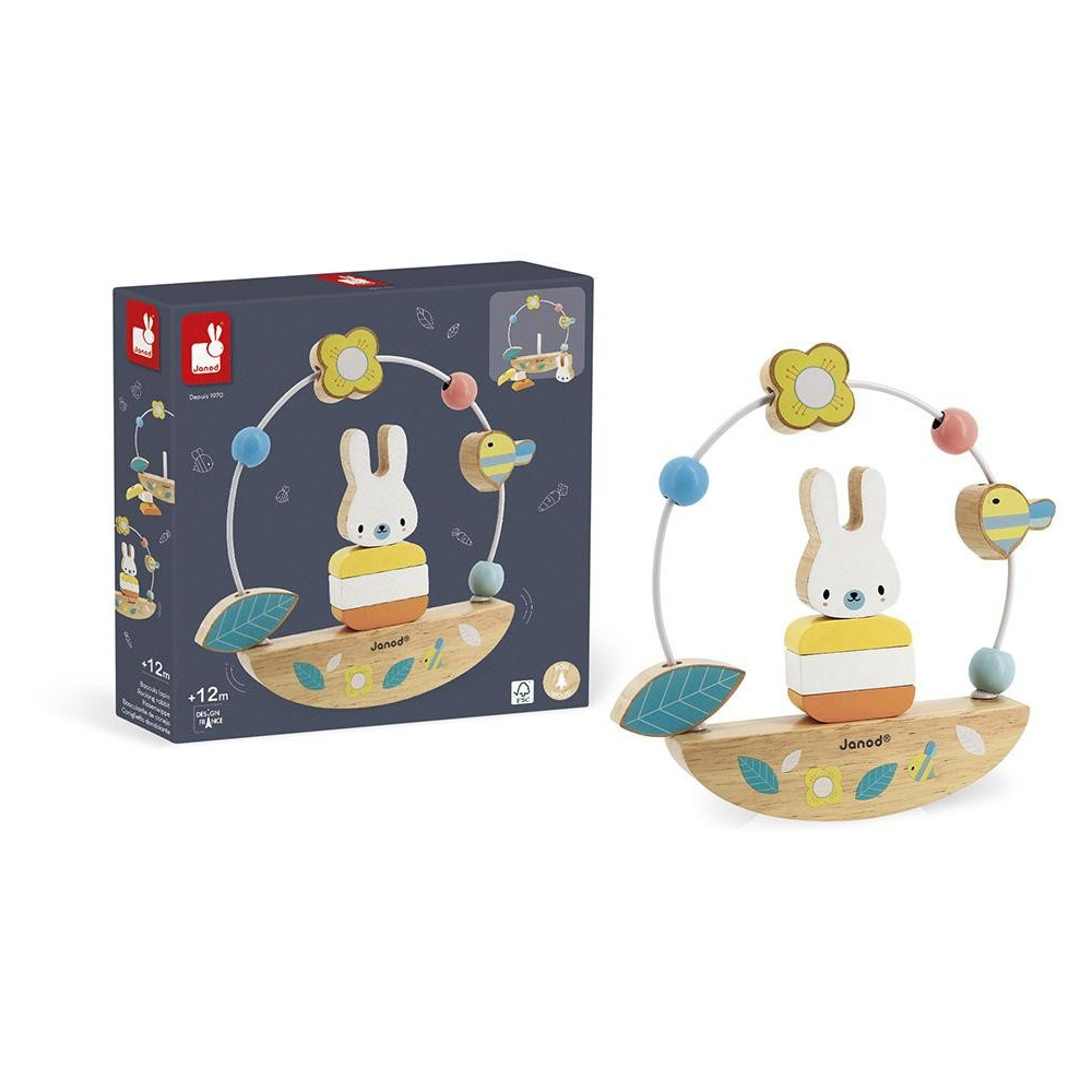 Krásna hračka plná interakcií pre najmenšie detské ruky! Roztomilý zajačik z kolekcie Pure je umiestnený pod oblúkom plným prekvapení. Táto drevená vzdelávacia hračka 3 v 1 zabaví všetky zvedavé detičky vďaka 3 aktivitám pre deti v ranom detstve: stohovateľný králik zo 4 častí, ktoré sa dajú zložiť, oblúk, po ktorom môže dieťa pohybovať 6 drevenými prvkami, a nakoniec zábavný hojdací stojan. Táto nádherná detská hračka má krásne pastelové farby a roztomilé postavičky. Popri zábave s hračkou si deti rozvíjajúaj svoje jemné motorické zručnosti a zrakovú ostrosť.