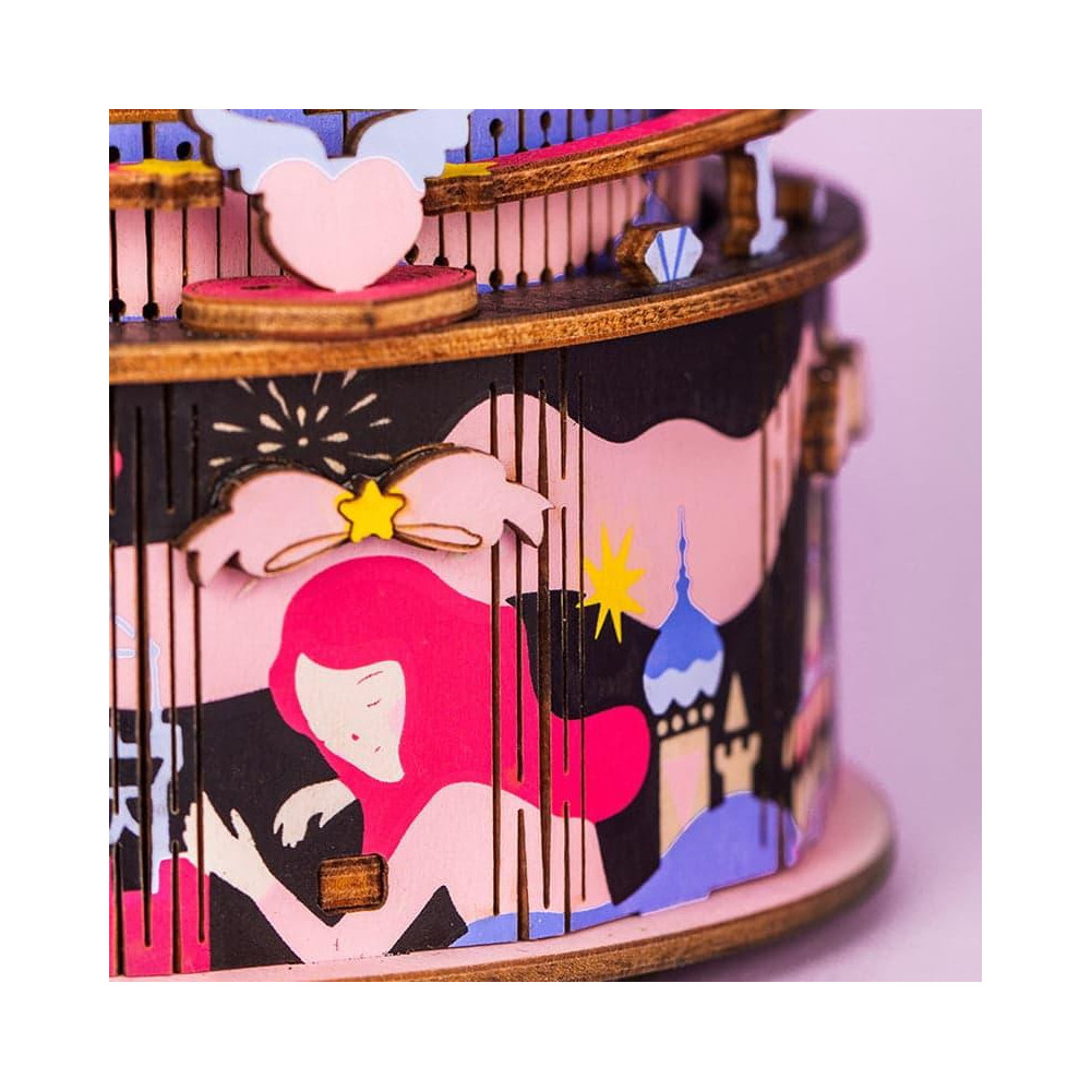 Detailní barevný model klasického kolotoče. Skládačky hracích skříněk Robotime jsou nabízeny v mnoha podobách, přírodních i barevných, lišících se nápaditými pohyblivými detaily doprovázejícími zvuk. Nezaskočí Vás svou náročností a po sestavení zkrášlí poličku. Nechte se unášet známými melodiemi, každá skříňka hraje jinou, odpovídající své výsledné podobě. Kvalitní natahovací 18 tónové strojky s japonskými komponenty zaručují čistý a dostatečně hlasitý projev. Skládačka je dodávána v nesloženém stavu, balena v krabici. Vybaveno detailním návodem k sestavení. Hlavní vlastnosti:melodie It's A Small World174 precizně vyřezaných potištěných dílkůstřední obtížnost sestavení