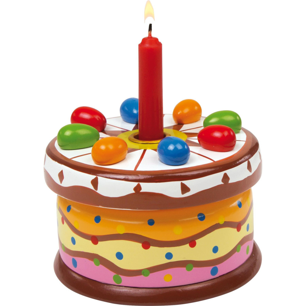 Všechno nejlepší k narozeninám... melodie, kterou hraje tato lákavě barevná hračka! Hliníkový držák obsahuje dřevěnou svíčku, kterou lze nahradit skutečnou svíčkou. Veselá melodie, která doprovází nejlepší přání na narozeninový stůl, dělá tento zvláštní den ještě příjemnější!