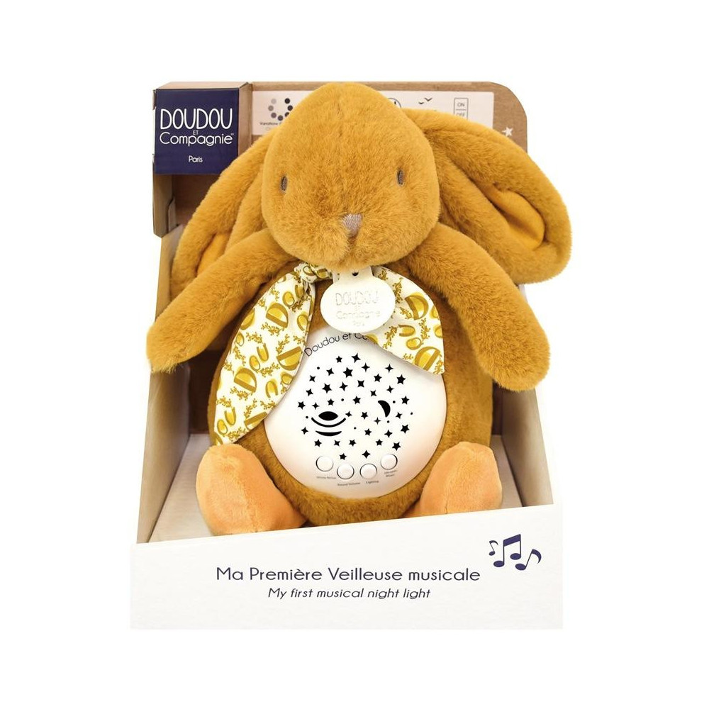 Doudou Hrací skříňka s projekcí Králíček hořčicově žlutý
