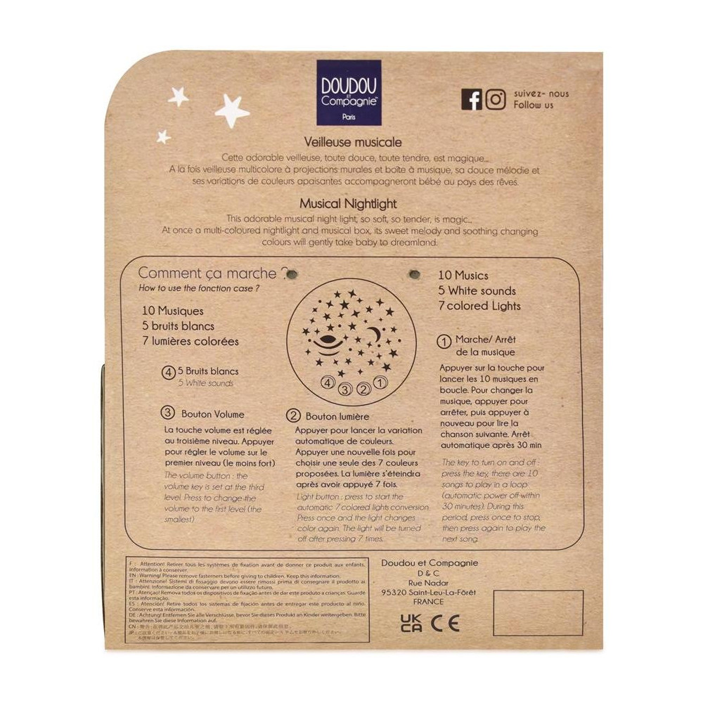 Kdopak tady ještě nespí? Díky tomuto roztomilému králíčkovi bude uspávání Vašeho děťátka hračkou. Králíček z jemného materiálu je vhodný na mazlení a na bříšku má hrací skříňku s projekcí vesmíru v 7 barvách. Přehrává 10 jemných melodií a 5 uklidňujících zvuků, které ukolébají Vaše miminko a podpoří jeho relaxaci a kvalitní spánek. Pomocí 4 tlačítek je možné nastavit hlasitost a různé režimy přehrávání melodií a jednotlivé barevné režimy. Na výběr je automatický režim, kdy se melodie přehrávají opakovaně nebo je možné zvolit konkrétní skladbu. Stejně tak můžete nastavit automatický režim světla, kdy se budou barvy plynule měnit anebo vybrat Vaši oblíbenou barvu. Vizuální a sluchová stimulace pomáhá smyslovému rozvoji dítěte. Tato hrací skříňka s projekcí je krásným dárkem pro každé dítě již od narození.