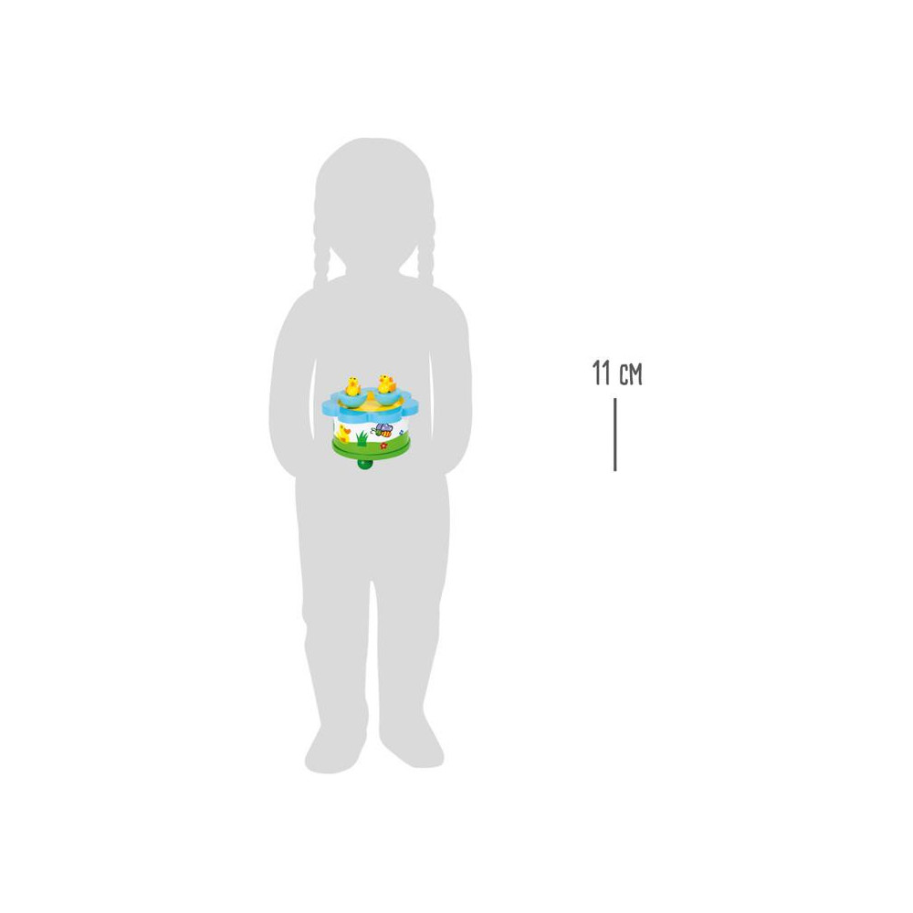 Kvák, kvák! Dvě malá káčátka rozzáří dětské oči radostí, když tančí po rybníce na libozvučnou melodii. Malé kachničky bezpečně drží na vrcholu dřevěné natahovací hrací skříňky pomocí magnetů. Lze je jednoduše oddělit a děti si s nimi mohou hrát na zemi či na stole. Díky snadnému ovládání mohou tuto hrací skříňku samostatně obsluhovat i děti.