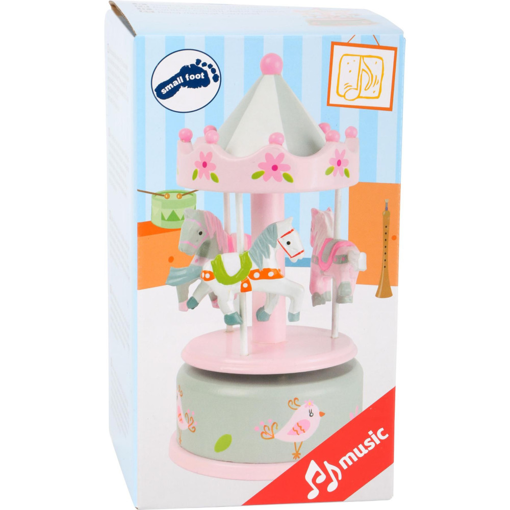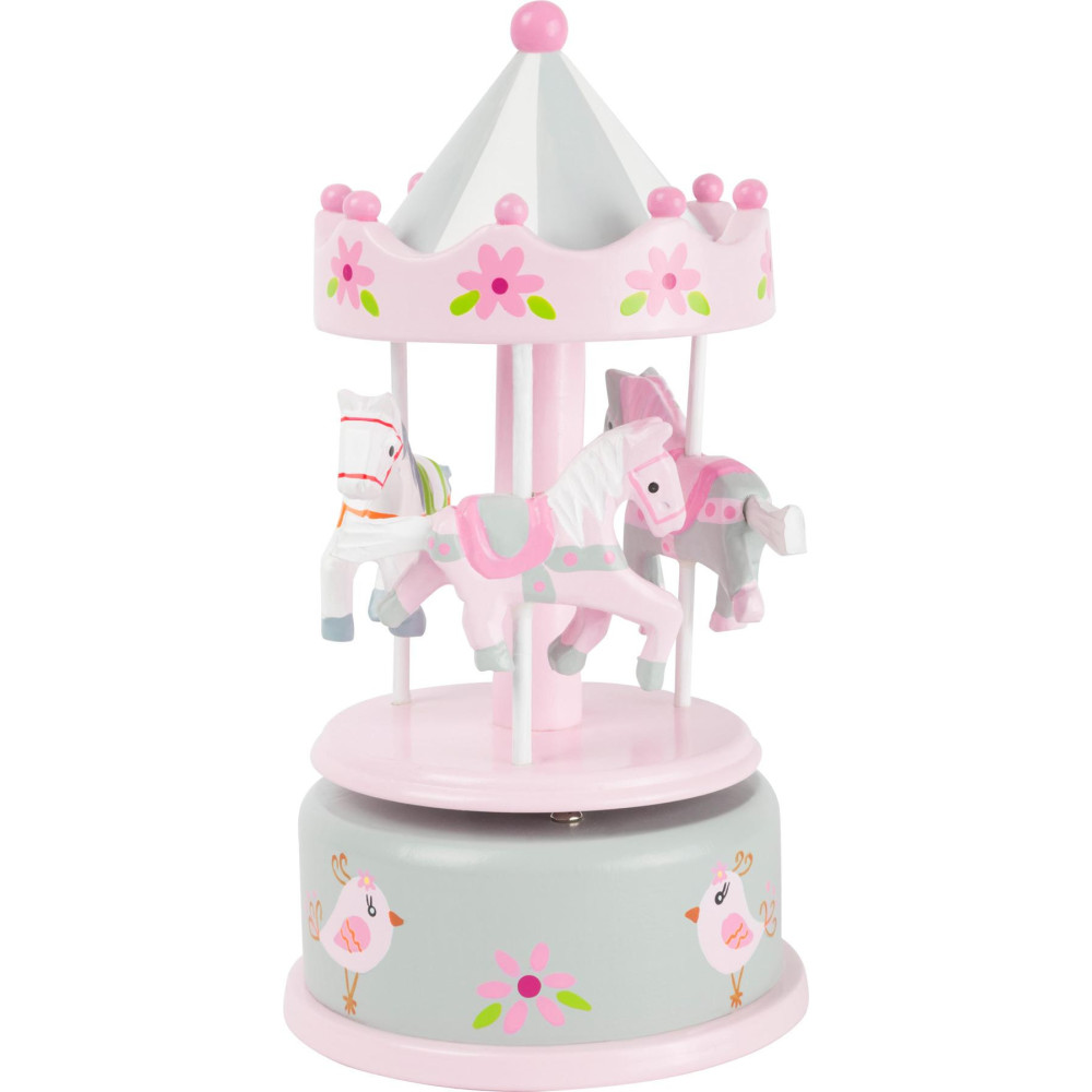 Kdo tady už usnul? Tato klasická dřevěná hudební skříňka uspí každé malé dítě. Kruhový kolotoč s koníky se vesele otáčí s melodií "Where do I begin?".