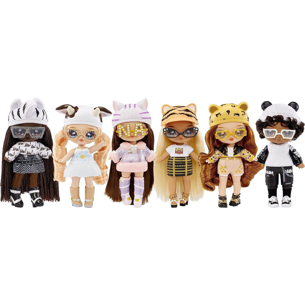Rozbalování Na! Na! Na! Surprise Fuzzy panenky přináší úplně nový zážitek. Panenka i doplňky jsou pokryté heboučkými chloupky, které musíš sloupnout dolů, abys objevila, jak panenka a doplňky vypadají doopravdy. Tyto úplně nové panenky jsou inspirované zvířecí říší, mají krásné natištěné obličeje a pohyblivé klouby v ramenou, kyčlích a otáčejí hlavou. Obsah balení:1 panenka,1 pokrývka hlavy, 1 brýle, 1 outfit,1 boty.