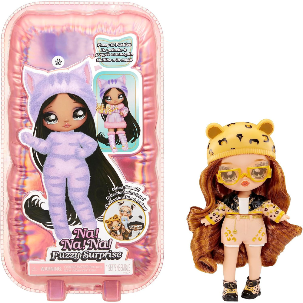 Rozbalování Na! Na! Na! Surprise Fuzzy panenky přináší úplně nový zážitek. Panenka i doplňky jsou pokryté heboučkými chloupky, které musíš sloupnout dolů, abys objevila, jak panenka a doplňky vypadají doopravdy. Tyto úplně nové panenky jsou inspirované zvířecí říší, mají krásné natištěné obličeje a pohyblivé klouby v ramenou, kyčlích a otáčejí hlavou. Obsah balení:1 panenka,1 pokrývka hlavy, 1 brýle, 1 outfit,1 boty.