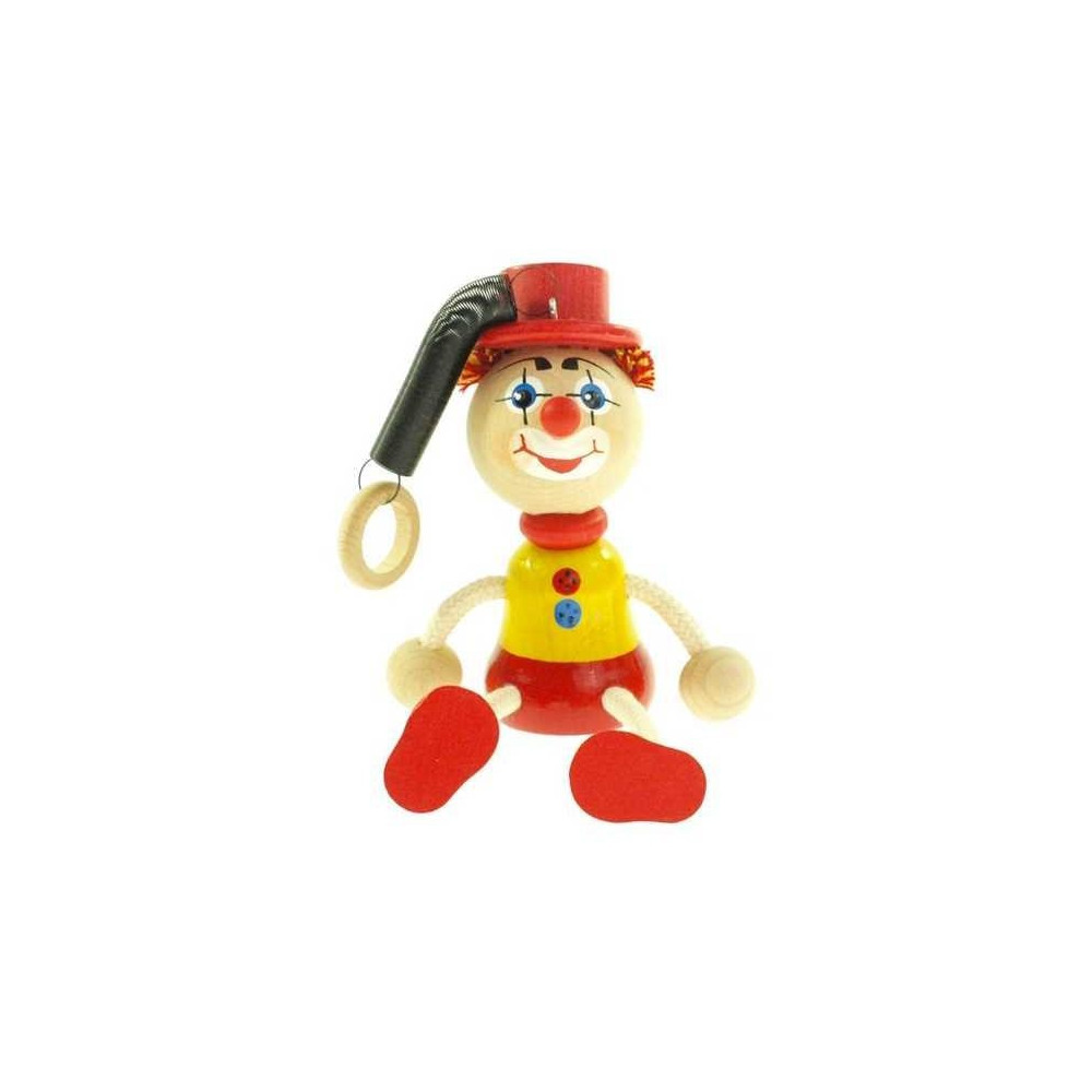 Klaun s kloboukem na pružině, který poskakuje nahoru a dolů. Dřevěná figurka pro malé i velké. Lze ho zavěsit za dřevěný kroužek na konci pružinky.