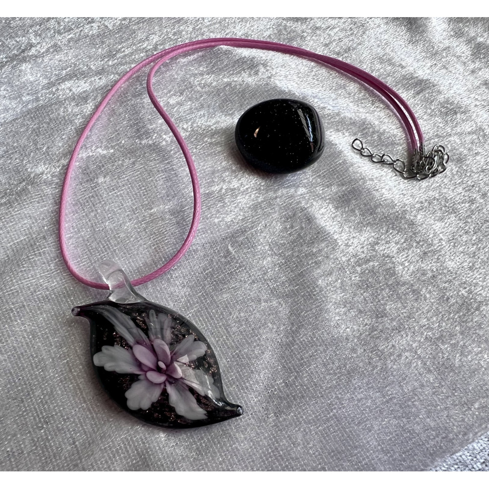Alada beauty Náhrdelník skleněný květ růžový na růžové splétané šňůrce s karabinkou.