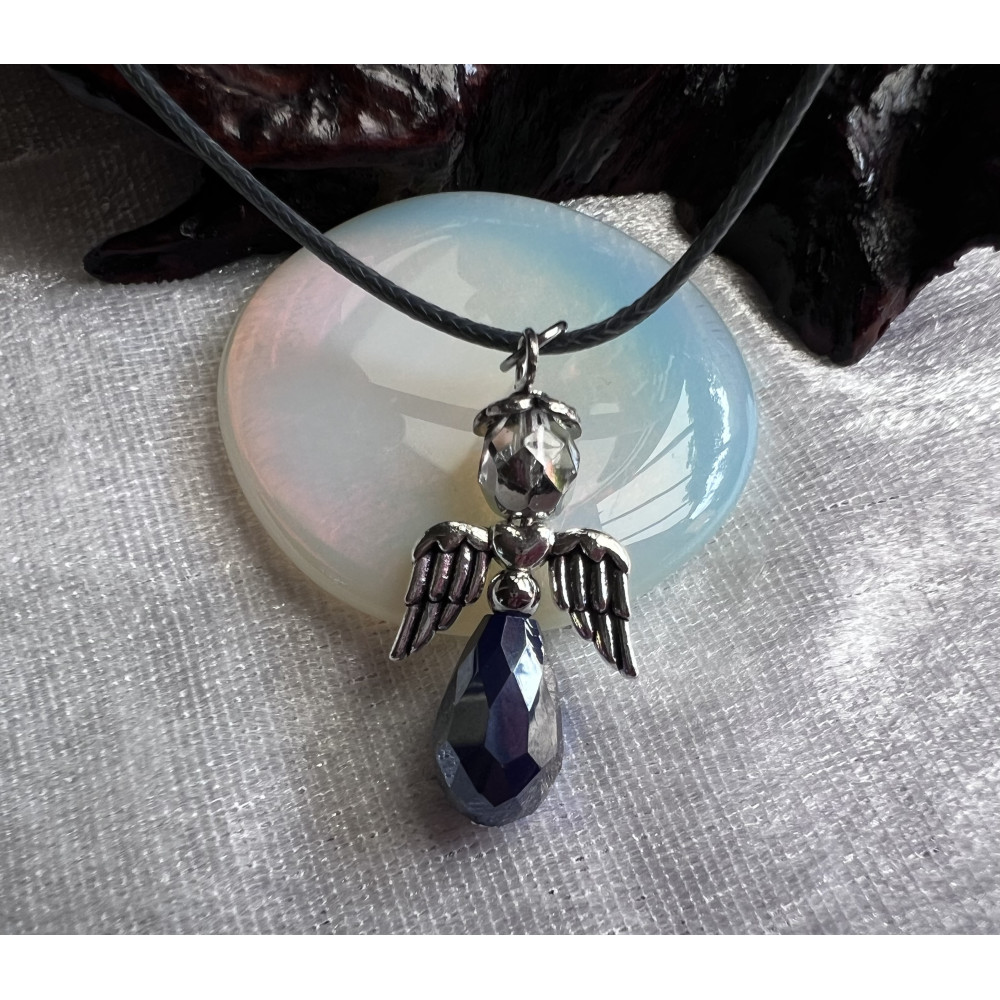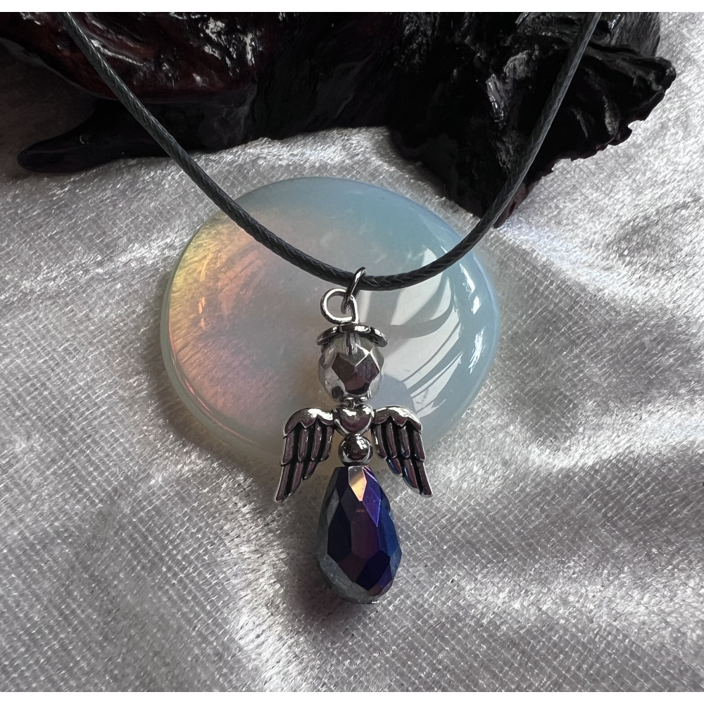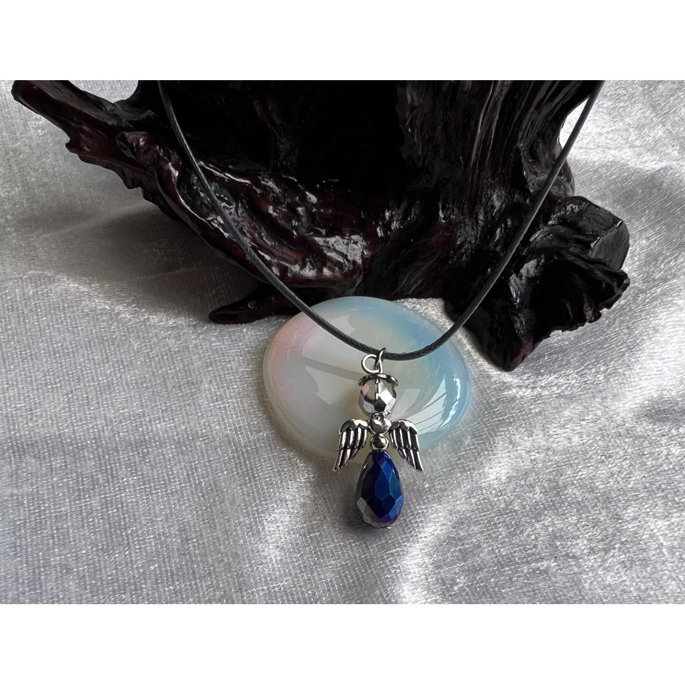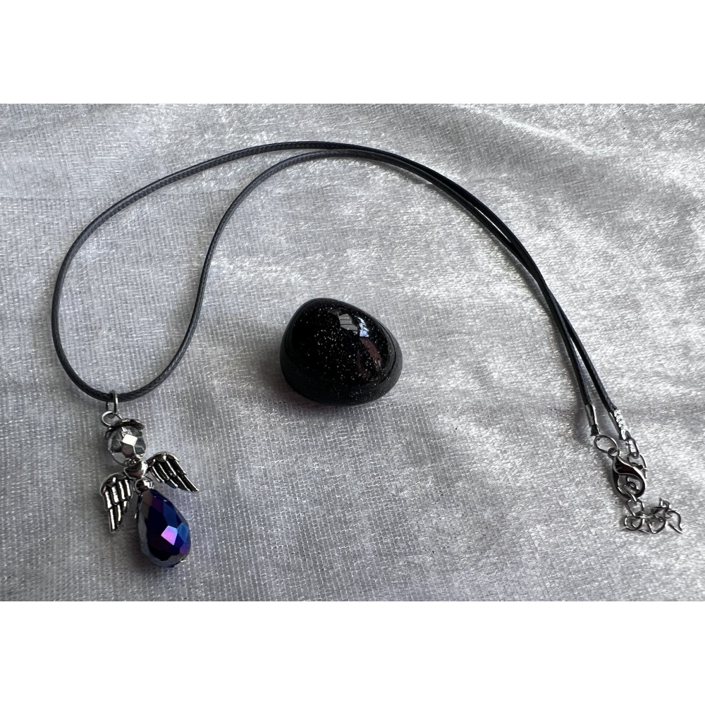 Alada beauty Náhrdelník tmavě modrý andílek na tmavě šedé splétané šňůrce s karabinkou.