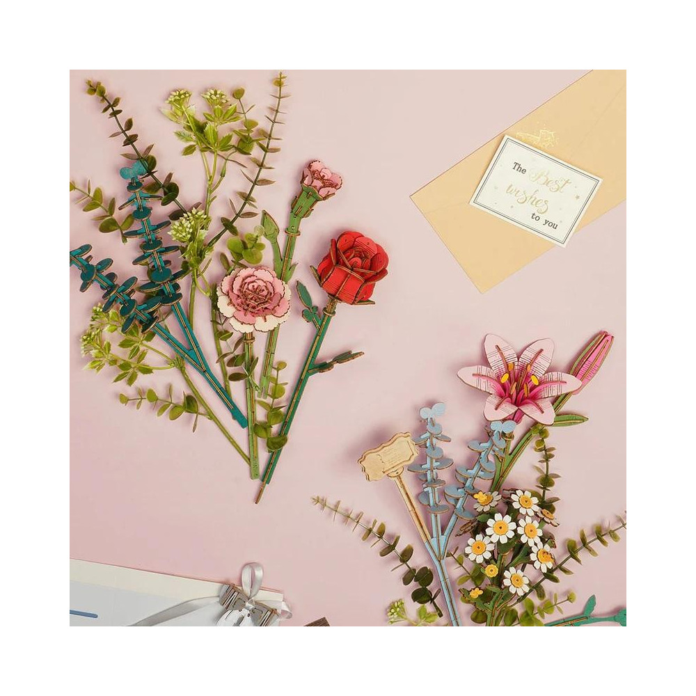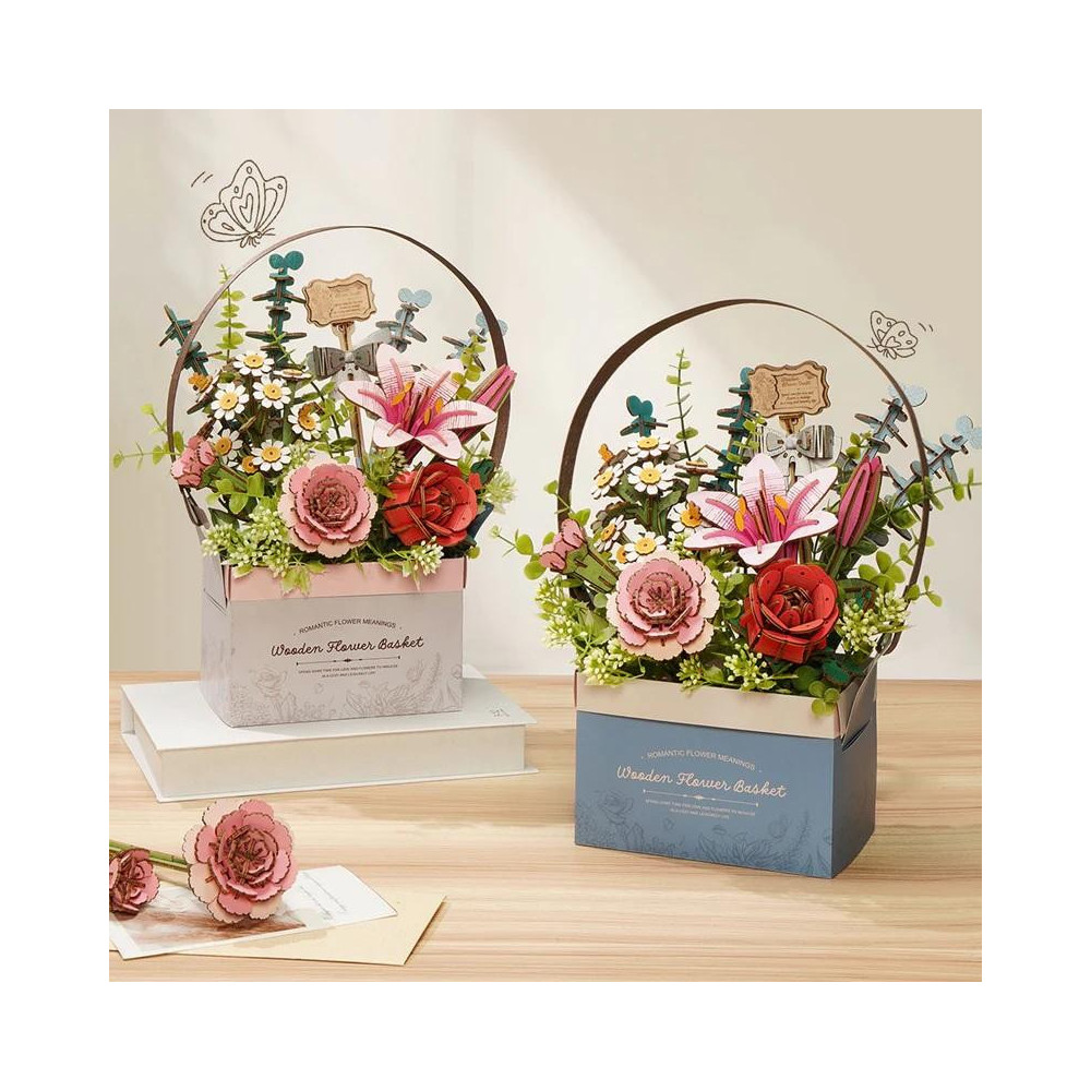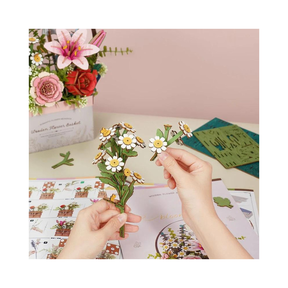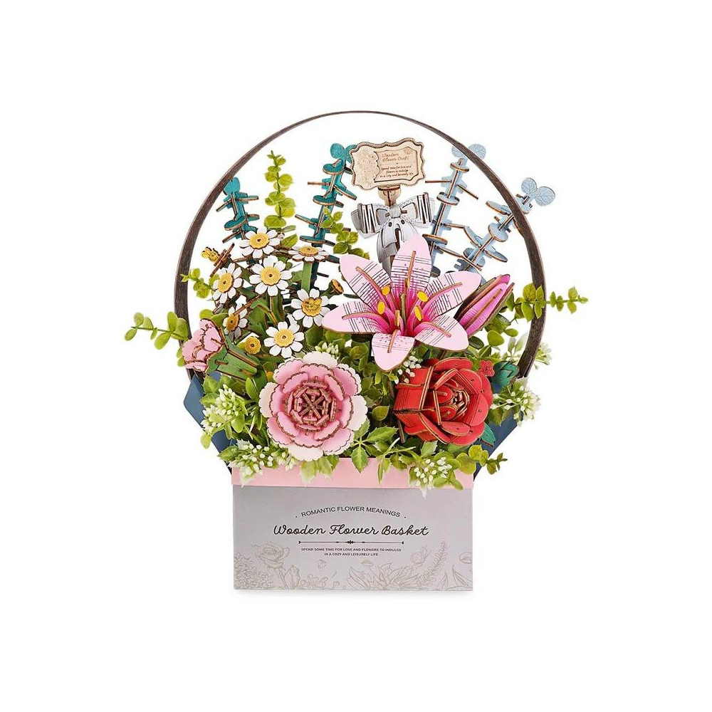 RoboTime 3D dřevěná skládačka Košík s květinami