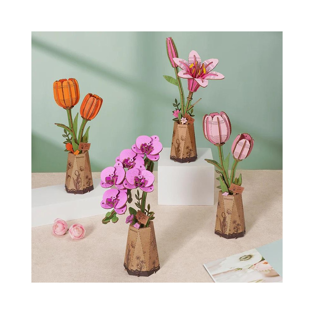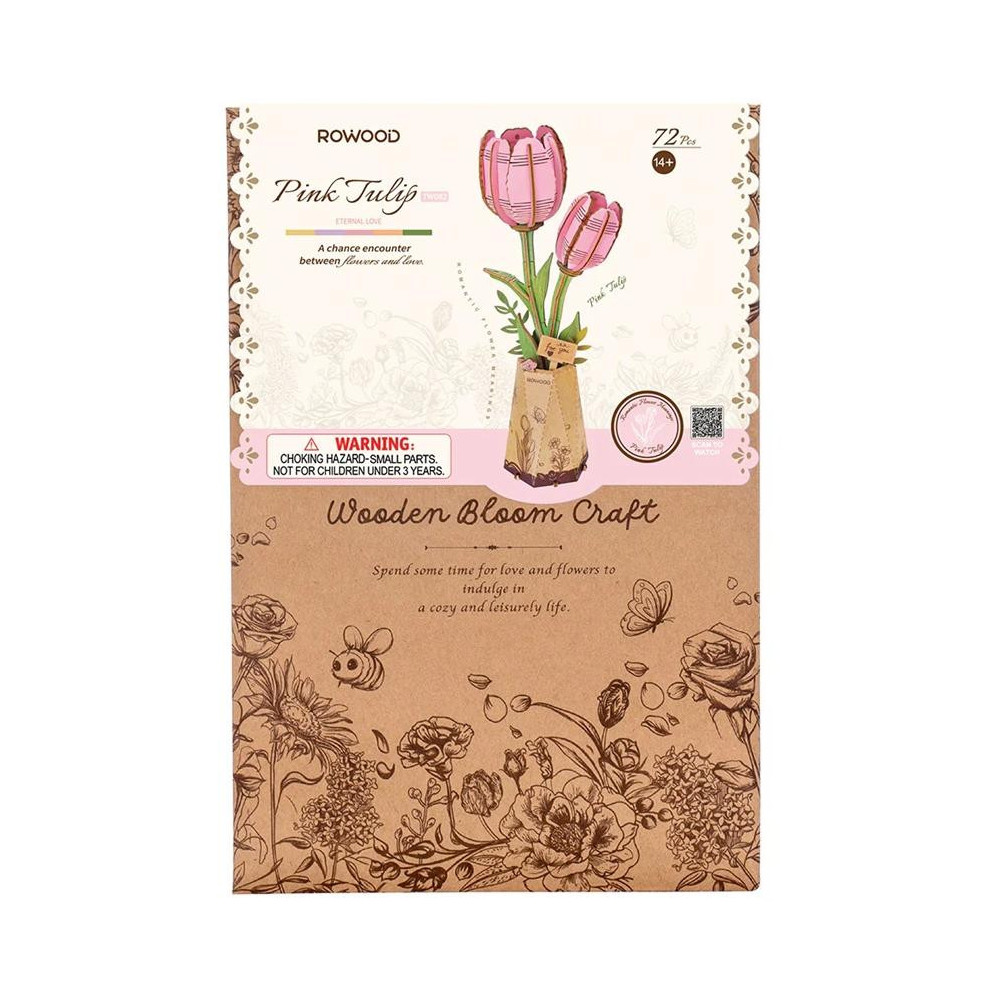 RoboTime 3D dřevěná skládačka Růžový tulipán