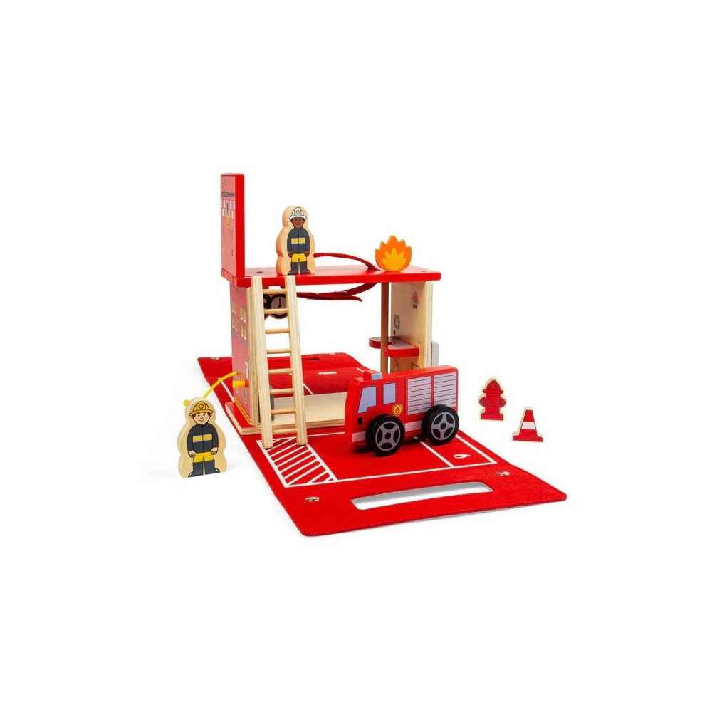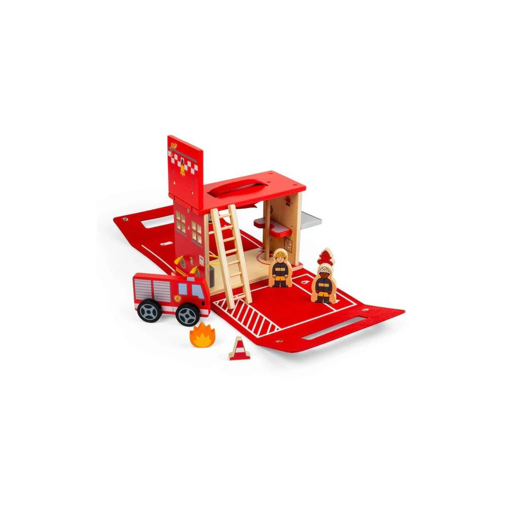 Bigjigs Toys Dřevěná hasičská stanice na cesty
