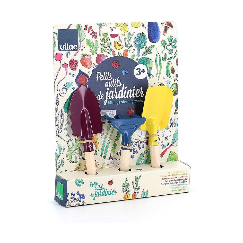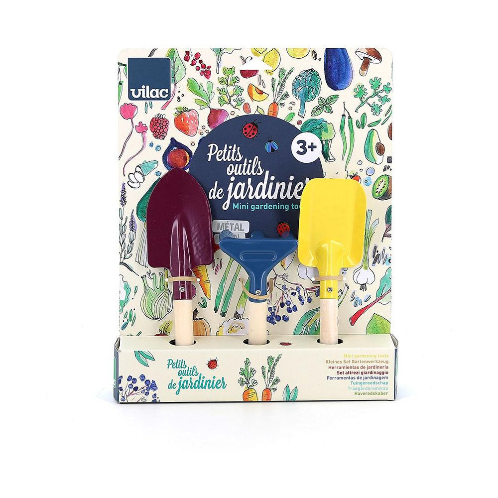 Bezpečný set nářadí na zahradu, který je velikostně přizpůsobený malým dětským ručičkám. Sada obsahuje ruční hrábě, rýč a lopatku. Mladí zahradníci je mohou použít při přesazování květin, sázení zeleniny nebo rostlin. Děti se tak mohou dozvědět více o životních cyklech rostlin, úloze opylujícího hmyzu a důležitosti péče o Zemi. Nářadí má pevnou dřevěnou rukojeť.