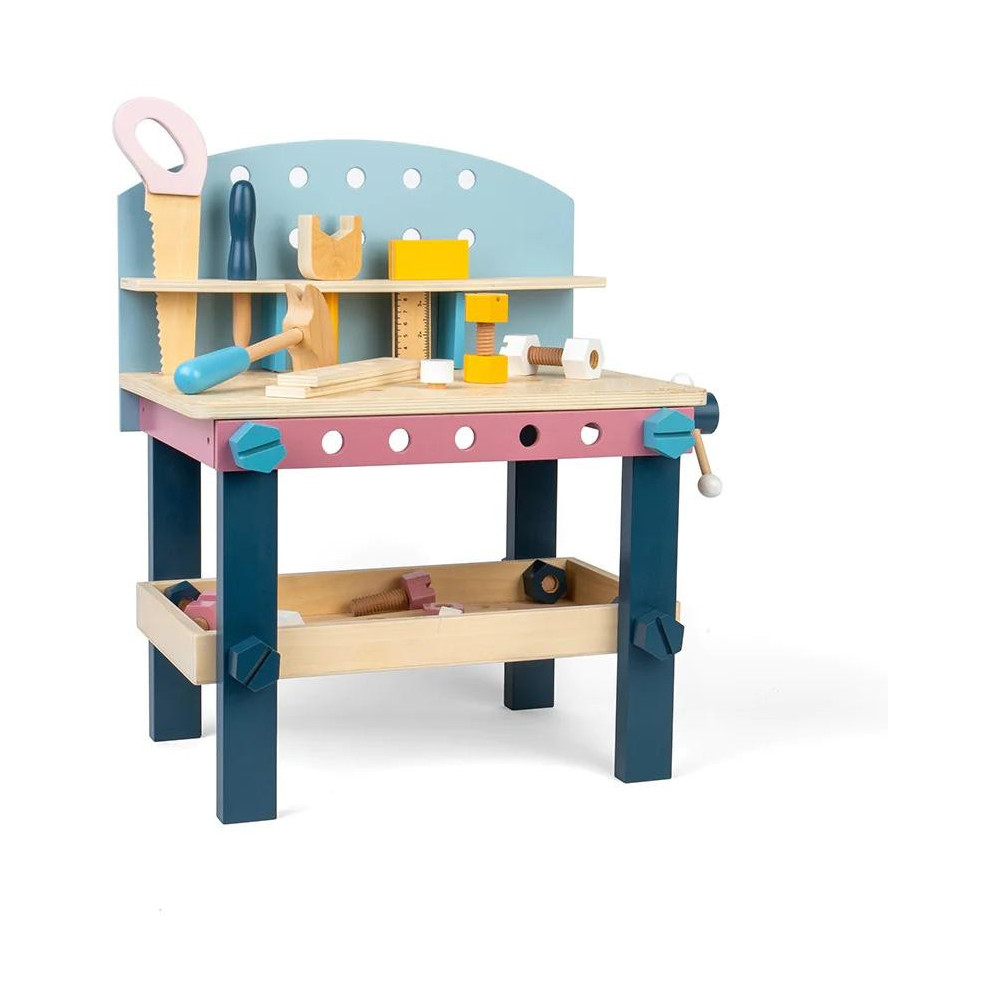 Hledáte vhodnou hračku pro svého malého řemeslníka? Výběrem tohoto dřevěného pracovního stolu udeříte hřebíček na hlavičku :-) Stůl podporuje objevování prostřednictvím hry, rozvíjí koordinaci, jemné motorické dovednosti, zručnost malých dětí a základy fungování nářadí. Je dodáván s pilou, klíčem, kladívkem, šroubovákem, úhelníkem a spoustou matic a šroubů. Navržen v jemných neutrálních barvách, takže bude vypadat nádherně v každém dětském pokoji nebo dětské herně. Vyrobeno z prvotřídního, udržitelného dřeva s certifikací FSC a barveno netoxickými barvami a laky.