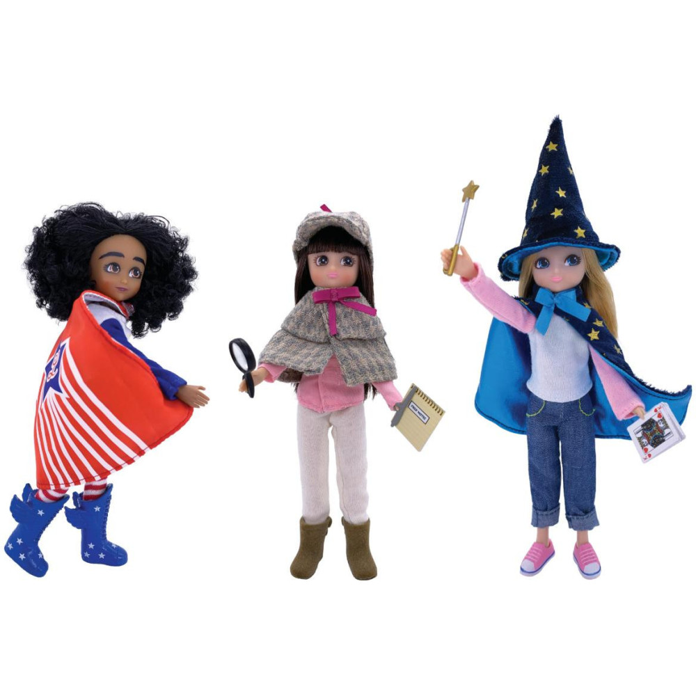 Chystáte večírek, nebo budete hrát divadlo? Překvapte přítomné originálním kostýmem! Vžijte se do role a nechejte pracovat svou fantazii, staňte se funky kandidátkou na prezidenta, slavnou detektivkou, které neunikne žádná drobnost, nebo kouzelnicí mistrně ovládající karetní triky. Exkluzivní balení třech různých outfitů nadchne každou fanynku originální zábavy. Všechny součásti jsou kvalitně zpracované, vyvedené pečlivě, s citem pro každičký detail. Souprava je balena v recyklovatelném obalu potištěném přírodními inkousty.
