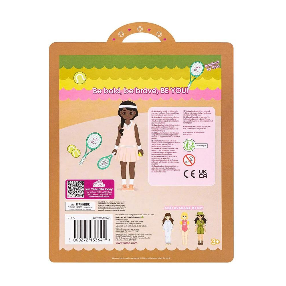 Hra, zápas, sport! Mladí tenisoví nadšenci si zamilují sadu oblečení a doplňků pro tenisový klub. V této stylové sportovní soupravě bude jejich panenka Lottie připravena zazářit na kurtu. Tato sada oblečení pro panenky podporuje imaginativní hru, která rozvíjí sebevědomí, kreativní myšlení, jazykové dovednosti a sociální inteligenci dětí.