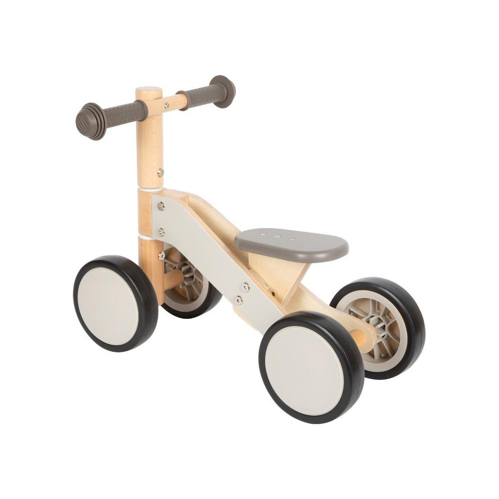 Dřevěné odrážedlo v designu oslíka, které se stane nepostradatelným pomocníkem Vašeho dítka doma i při procházkách venku. Proč namáhat nožičky, když může sednout a frčet?! Dřevěná robustní konstrukce je nejen příjemná na dotek, ale i nesmírně stabilní. Pogumovaná kola zajistí, že vaše dítě může prozkoumávat svět tiše a bezpečně, aniž by rušilo okolí. Gumové rukojeti nabídnou malým průzkumníkům pevný úchop a kontrolu nad svým vozítkem. Sedátko je nastavitelné od 22 do 25 cm, může se tak přizpůsobit výšce dítěte. Součástí je také odepínatelná taška na řídítkách v designu oslíka, která může sloužit jako praktický úložný prostor pro láhev s pitím či plyšového kamaráda. Zadní kola jsou blízko sebe a nabízejí tak dostatek prostoru pro nohy při odrazu.