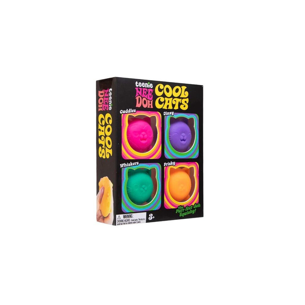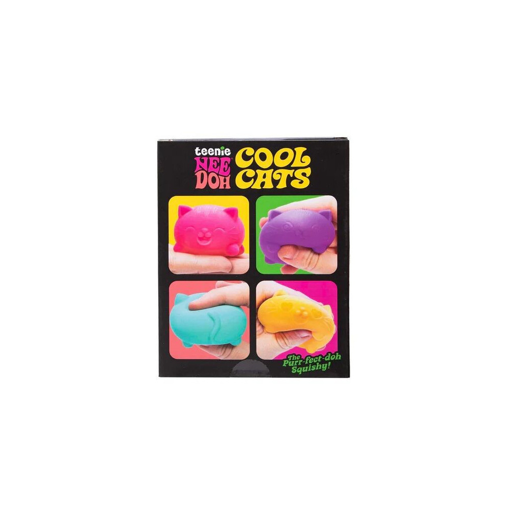 Mini mačkací hračky Cool Cats Teenie NeeDoh od značky NeeDoh přinášejí zábavný a uklidňující zážitek ze hry. Tyto malé „squishy“ kočičky jsou navržené tak, aby padly přesně do dětské ruky a poskytly příjemný hmatový vjem při mačkání, natahování i tvarování.