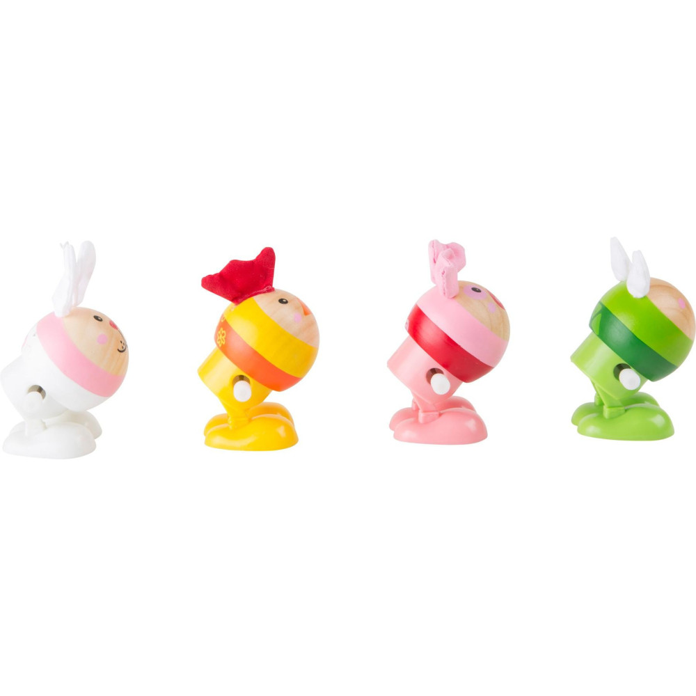 Vtipná skákající zvířátka z broušeného dřeva s měkkými plstěnými oušky a plastovými nožkami. Když otočíte strojkem, zvíře se natáhne a poté začne poskakovat okolo. Můžete si vybrat prasátko, žábu, králíka nebo kuře. Pokud požadované zvířátko není skladem, zasíláme náhodně.