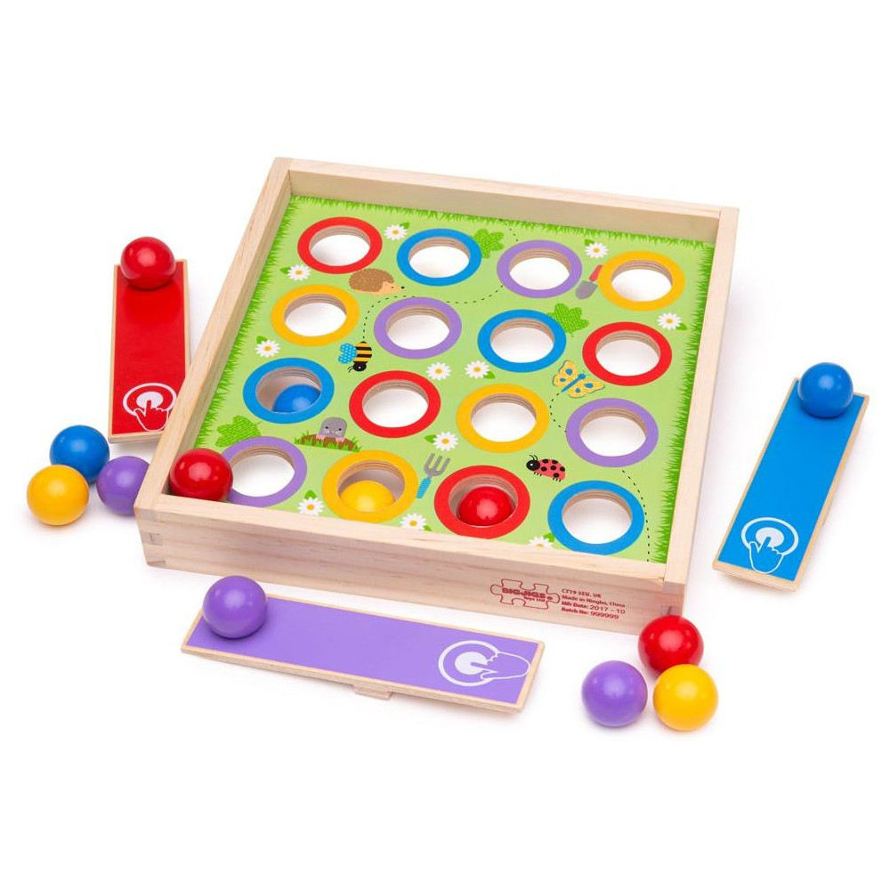 Hra zaměřená na dovednost a přesnost! Hráči se musí střídat tak, aby umístili barevnou kouli do odpovídající dírky na desce. Hráč, který zvládne umístit všechny čtyři barevné koule do děr, vyhraje! Hra může být hrána až 4 hráči se čtyřmi různými barvami na desce - červená, modrá, žlutá a fialová. Skvělý způsob, jak rozvíjet dovednost soustředění a pozorování, a zlepšuje schopnost počítat. Podporuje interaktivní hrací sekce a rozvíjí slovní zásobu. Vyrobeno z vysoce kvalitních, zodpovědně dodávaných materiálů. Odpovídá současným evropským bezpečnostním normám.