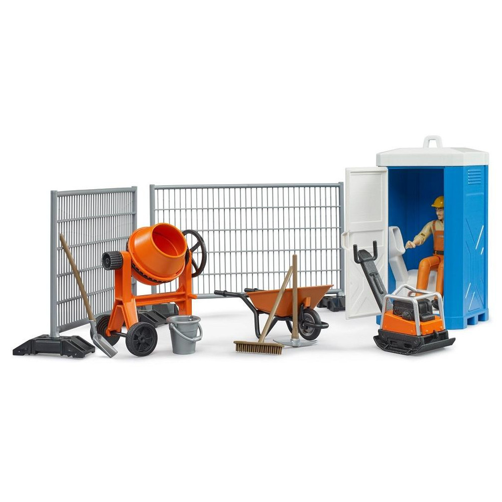 Tato tematická sada umožňuje malým stavebním dělníkům realisticky ztvárnit celou řadu scén na staveništi. Stavební ploty zajišťují prostor staveniště. Součástí dodávky je také vibrační deska a míchačka malty pro stavební práce. Součástí je samozřejmě také mobilní toaleta pro osobní potřeby stavebního dělníka. Stavební sada bworld je vhodná zejména jako rozšíření pro vozidlo MB Sprinter (Bruder 2677), minirypadlo Cat (Bruder 2466) nebo traktor s čelním nakladačem JCB MIDI (Bruder 2427).