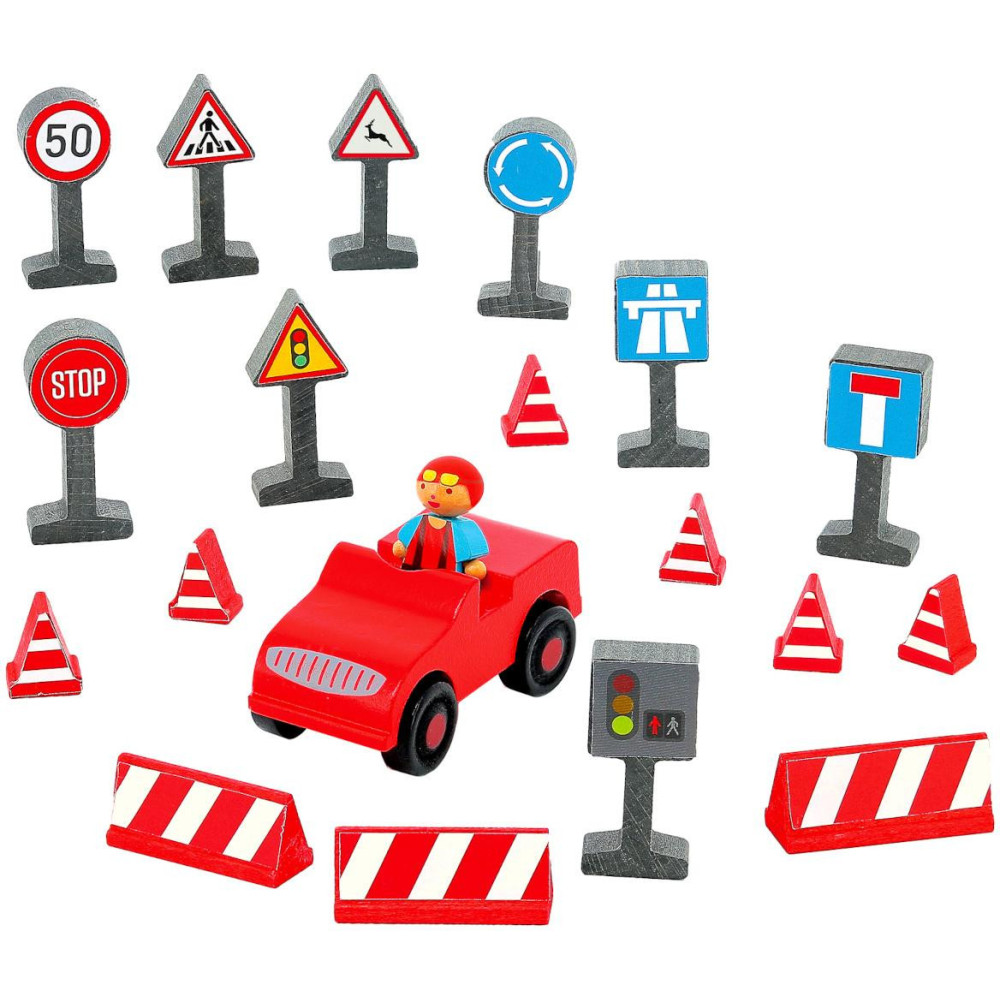 - pohybliva figurka řidiče, autíčko a dopravní značky