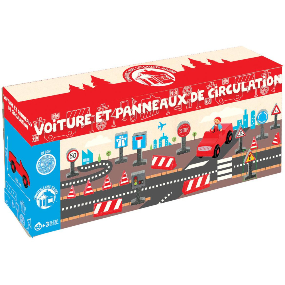 Postavička řidiče s autíčkem a dopravnmi značkami. Figurky ke stavebnicím Jeujura Constructions mohou sloužit i samostatně. Figurka řidiče má pohyblivé končetiny. Sada je nabízena v tématicky zaměřených sériích, ale dá se různě kombinovat. Stejně jako stavebnice jsou vyráběny z masivního dřeva a jsou ošetřeny výhradně za použití barev a laků na bázi vody.