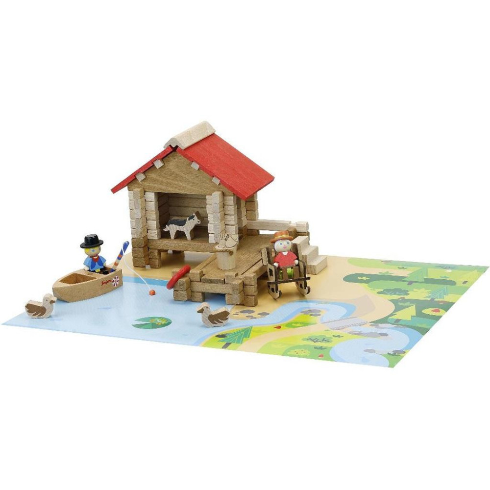 Dřevěná stavebnice rybárny rozvíjí fantazii a stane se ozdobou dětského pokoje. Stavebnice Jeujura Constructions mají dlouhou tradici a patří mezi klasické francouzské hračky. Nabízí série tématicky věnované chatám, domkům a farmám, ale také divokému západu a středověku. Dají se mezi sebou volně kombinovat a k řadě z nich je také nabízeno příslušenství, figurky a vozidla. Jsou vyráběny ve Francii, z masivního bukového a borovicového dřeva francouzského původu. Dílky jsou ošetřeny výhradně za použití barev a laků na bázi vody. Každá sada je balena v praktickém lepenkovém kufříku potištěném rostlinnými inkousty a součástí balení je snadno pochopitelný návod.