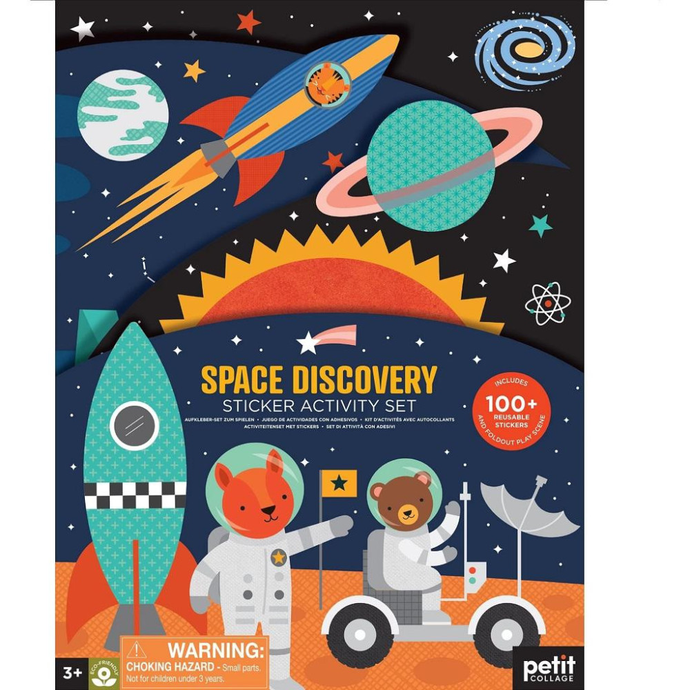 Poznejte pozoruhodnou krásu hvězdného nebe a prozkoumávejte se zvířátky nové planety! Se znovupoužitelnými samolepkami Vás čekají hodiny zábavy! Velká rozkládací scéna má hravé a podrobné ilustrace na obou stranách. Děti si vyberou z více než 100 samolepek, které vyplní poutavé scény z vesmírného prostředí.