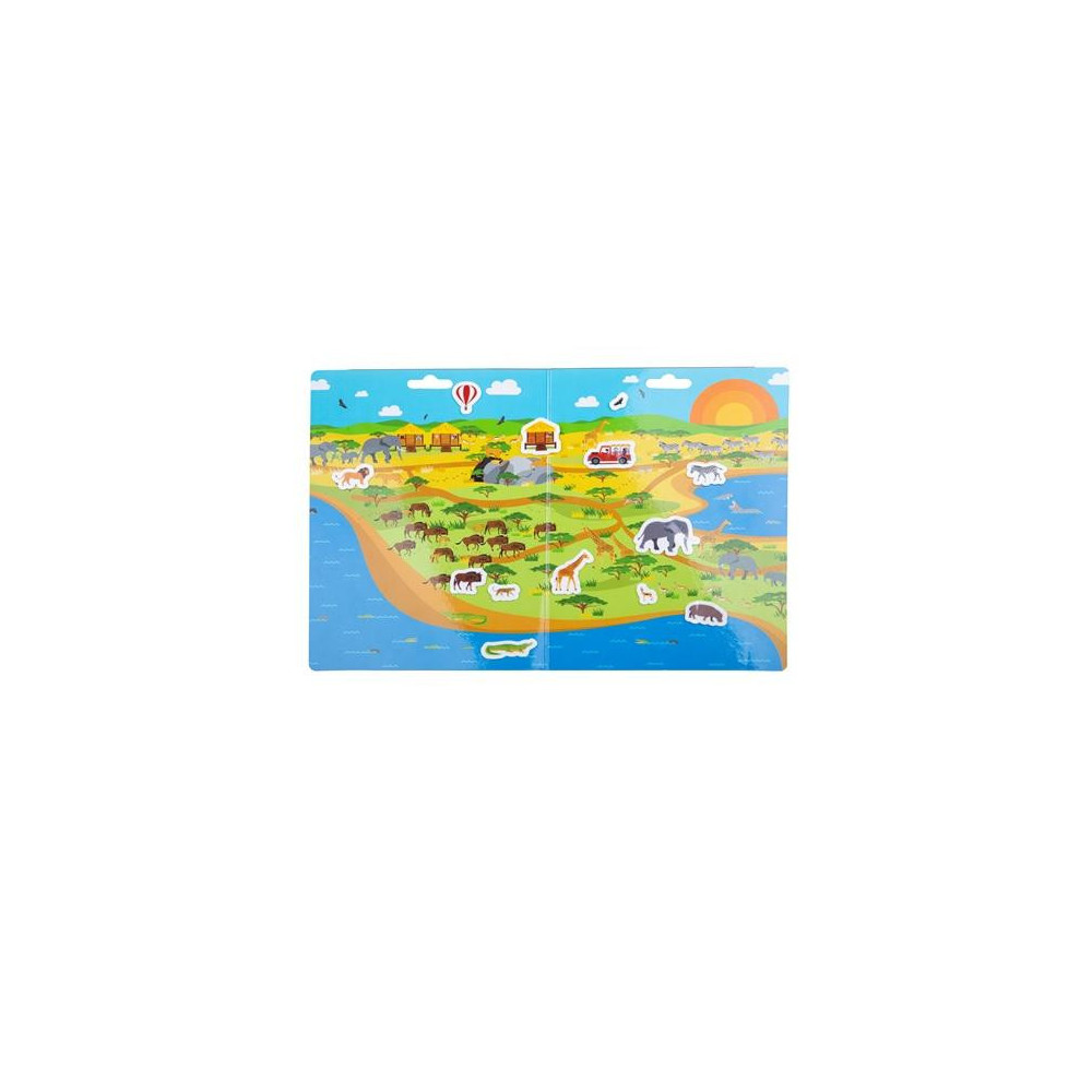 Připravte se na hodiny vyprávění o divokém světě safari s touto skvělou knížkou s nálepkami. Každá nálepka je omyvatelná a znovu použitelná, což umožňuje jejich použití znovu a znovu. To znamená, že děti mohou při každém hraní vytvořit jinou scénu. Mohou mluvit o tom, co se děje v každé scéně, kterou vytvoří. Tím je dítě povzbuzováno k tomu, aby si rozšířovalo slovní zásobu a podpořilo rozvoj řeči a koncentrace.