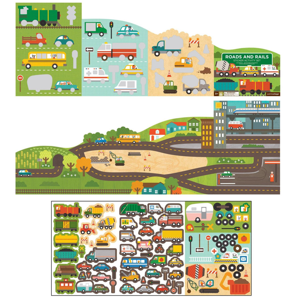 Petitcollage Znovupoužitelné samolepky se scénou Auta a stroje