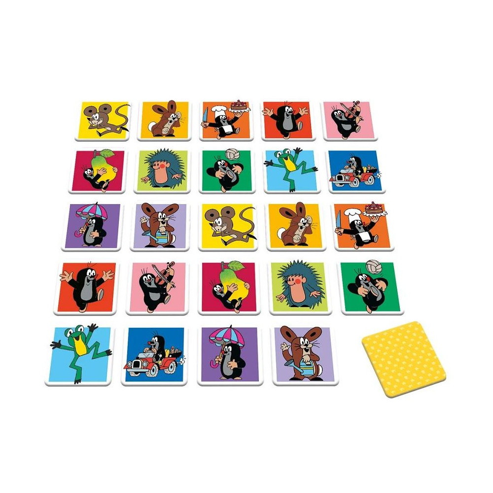 Klasická hra s menším počtem dílků vhodná pro nejmenší děti. Trénujte paměť svých dítek hraním pexesa. Kartičky jsou velké a extra pevné s milými obrázky Krtečka a jeho přátel. Vhodné pro naučení základů pexesa. Pro děti od 2 let. Hra podporuje soustředění a procvičuje jemnou motoriku. Vyrobeno v České republice.