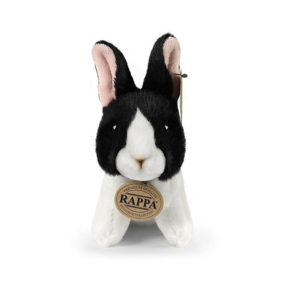 Plyšový králík bílo-černý sedící o velikosti 16 cm je vyroben z nejkvalitnějších materiálů a patří do exkluzivní kolekce plyšových hraček značky Rappa. Každý kus je pečlivě ručně zpracován, díky čemuž působí velmi realisticky a připomíná skutečné zvíře.