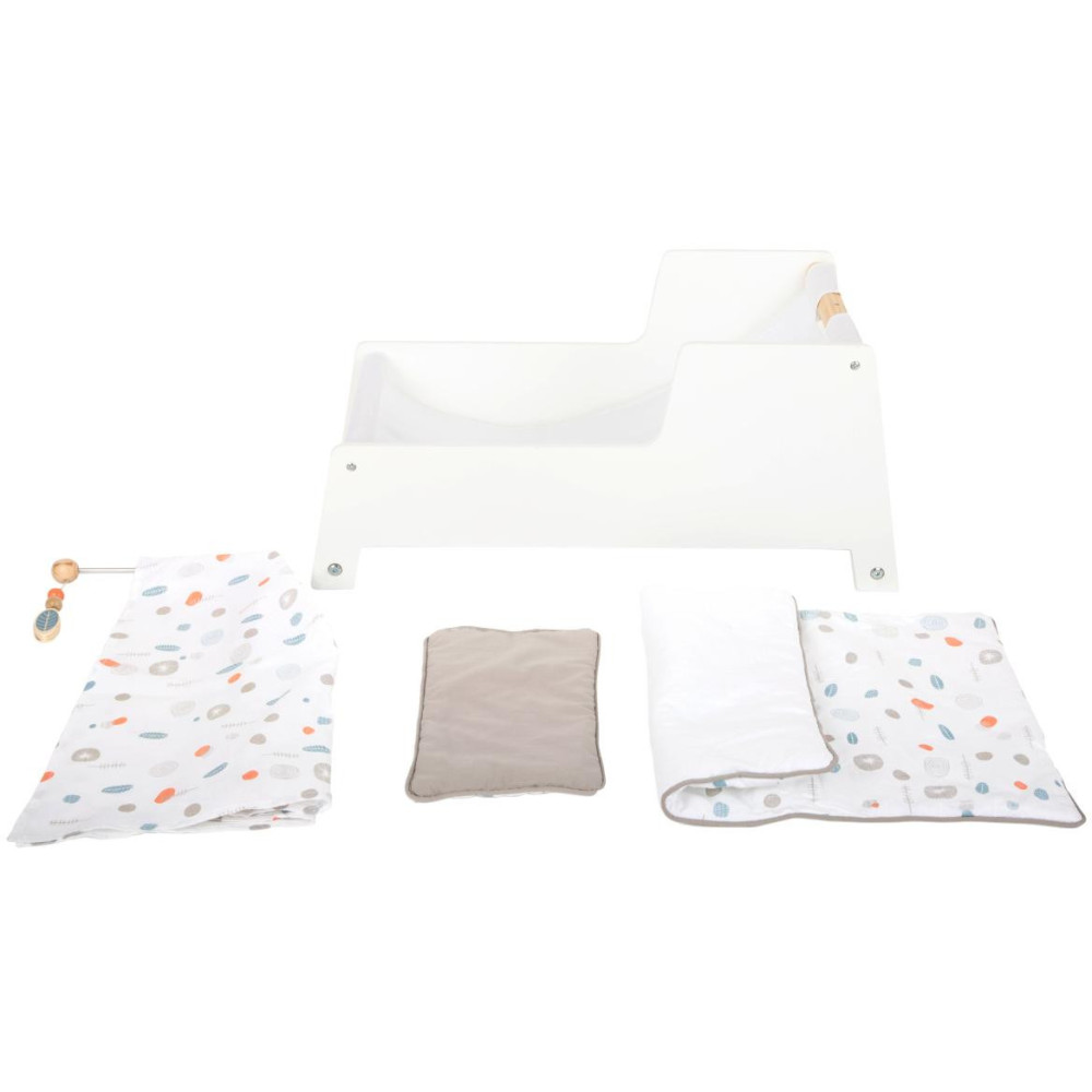 Panenky také potřebují spát! Tato moderní kolébka ve skandinávském designu je genderově neutrální, má oboustranné povlečení a pod velkou peřinou mohou spát panenky a plyšáci do 46 cm. Spodní část tzv. lyže kolébky jsou oddělitelné, stejně jako baldachýn. Vysoce kvalitní, stabilní konstrukce, zaoblené hrany, viditelně ze dřeva... Perfektní hračka do každého dětského pokoje. Hlavní vlastnosti: kolébka a postýlka v jednombaldachýn a závěsná hračkalyže a baldachýn lze oddělitstabilní konstrukce, kvalitní materiálygenderově neutrální povlečení, oversized peřinkazaoblené hrany, viditelně dřevěnápro panenky a plyšáky do 46 cmskandinávský lineární design, jemné barevné tóny Little ButtonŘada atraktivního příslušenství pro panenky Little Button nabízí pestrou paletu výrobků, od kočárku přes jídelní židličku až po skříň. Zákazníky snadno zaujmou jednotným funkčním a decentním designem využívajícím přímé linie a střídmé neutrální barvy. Díky tomu spolu mohou vytvořit ucelené harmonické soupravy, které vkusně doplní moderní interiér. Důmyslná konstrukce a kvalitní zpracování pomáhají zajistit vysokou stabilitu, bezpečnost a dlouhou životnost. Založte s jejich pomocí stylový koutek pro panenky, kde mohou Vaše děti rozvíjet svou fantazii a pečovatelské dovednosti.