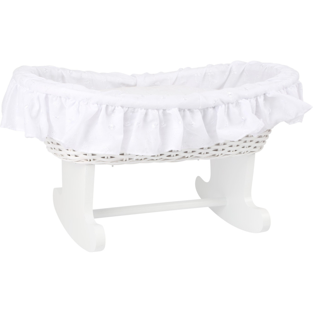 Jako v bavlnce! Panenky jsou jemně houpány, aby usnuly. Odnímatelná, měkká matrace v proutěném bílém koši, který je potažen látkou tvoří stylový a krásný doplněk v pokojíčku.