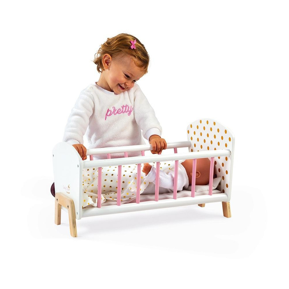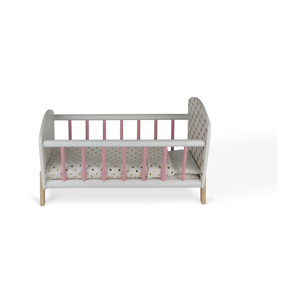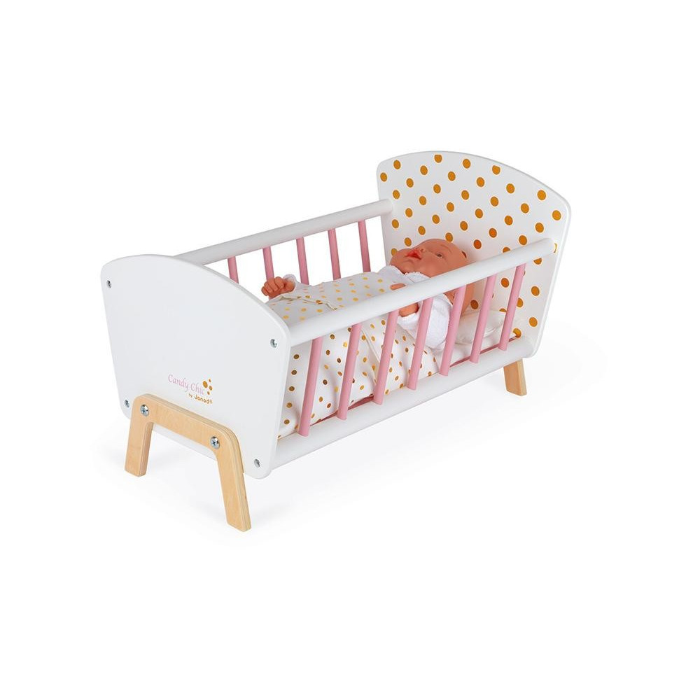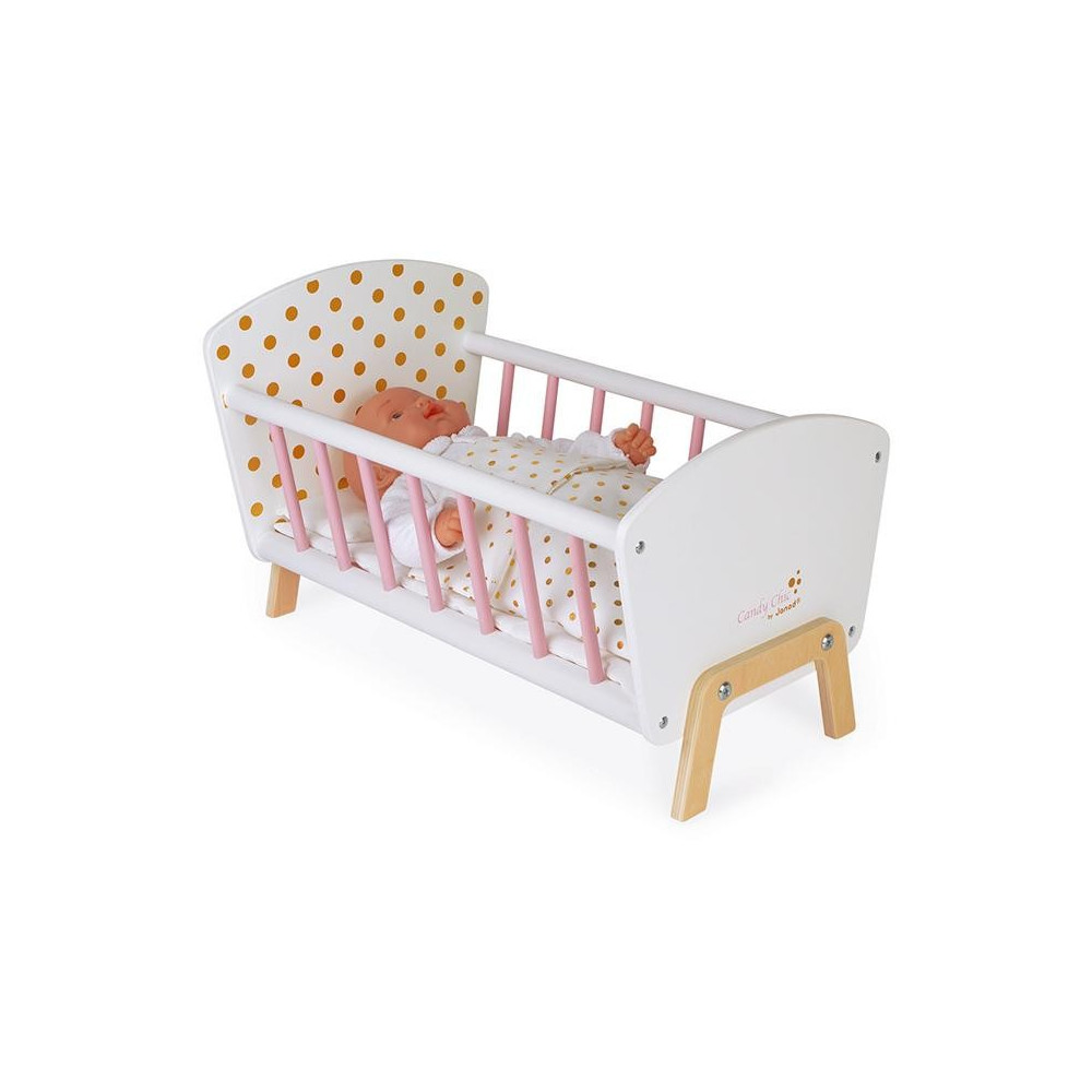 Drevená postieľka pre bábiku Janod séria Candy Chic.Drevená postieľka pre bábiky s okúzľujúcimi bodkovaným motívom splní sny každého dievčatka. Malé mamičky sa naučia procesu spánku pri hraní sa s bábikami podľa vlastnej fantázie. Roztomilá posteľná bielizeň, ktoré sa skladá z vankúša a perinky poskytuje príjemný spánok pre všetky bábiky. Vysokokvalitná výroba ponúka dlhotrvajúcu a trvanlivú hru. Ideálny doplnok k setu nábytku pre bábiky zo série Candy Chic.Vhodné pre deti: od 3 - 6 rokovRozmer produktu: 49,4 x 29,9 x 29,9 cmMateriál: drevo